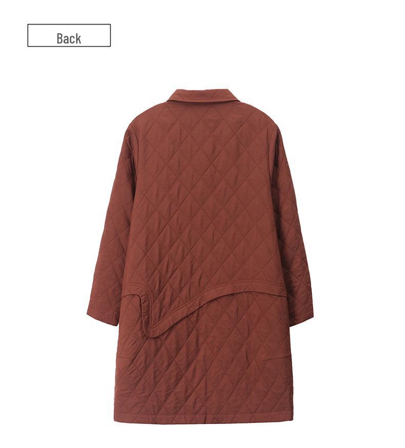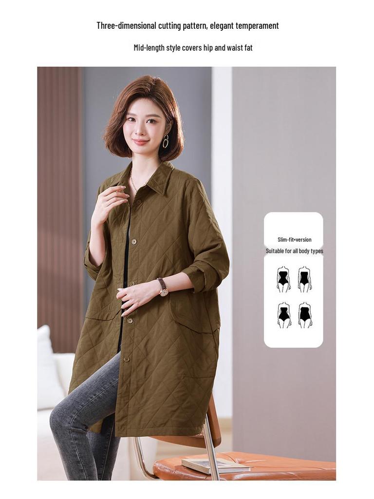 Этот женский тренч средней длины в стиле пэчворк с ромбовидным узором станет идеальным дополнением к вашему осеннему гардеробу.. Изготовленный из высококачественного полиэстера, он обещает комфорт и стиль для повседневной носки.. Пальто имеет изысканный отложной воротник и длинные рукава, создавая шикарный, но непринужденный образ.. Его однотонный узор делает его универсальным для сочетания с различной одеждой, а практичные карманы добавляют удобства.. Идеальное для женщин, ищущих сочетание элегантности и практичности, это пальто создано, чтобы согревать вас, оставаясь в тренде этой осенью.