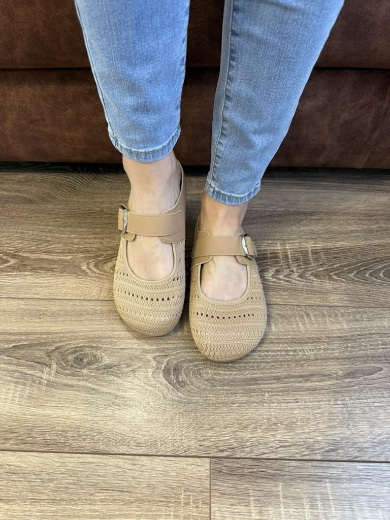 Женские туфли ❤️ Эти туфли - отличный выбор для тех, кто ищет комфортную и стильную обувь на каждый день. Их дизайн сочетает в себе элегантность и практичность. Верх туфель выполнен из интересного вязаного материала с ажурной перфорацией, что не только добавляет изящества, но и обеспечивает хорошую вентиляцию в тёплое время года. Контрастные детали из гладкой экокожи бежевого оттенка по краю и на ремешке создают аккуратный и завершённый вид. Ремешок с липучкой позволяет регулировать посадку, обеспечивая надёжную фиксацию на ноге. Такая обувь станет прекрасным дополнением к летним и весенним образам. Они подойдут к лёгким платьям, юбкам, брюкам и джинсам, а благодаря нейтральному оттенку легко впишутся в любой гардероб. Размер 35 хорошо подходит на стопу 22,5-23 см. С удовольствием рекомендую 👍 Удачных покупок ❤️ Ваша Вика 😊