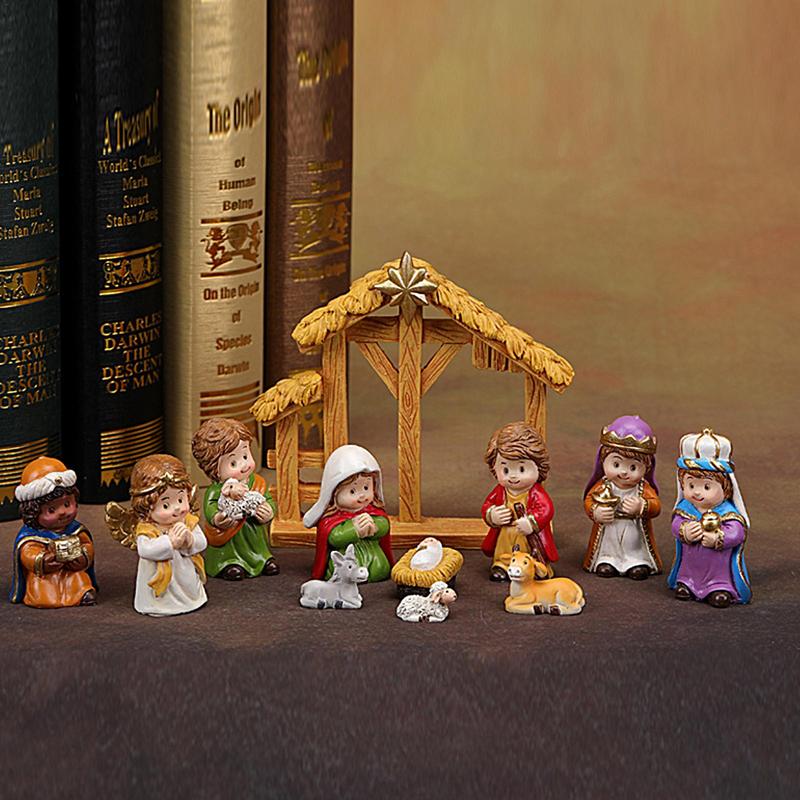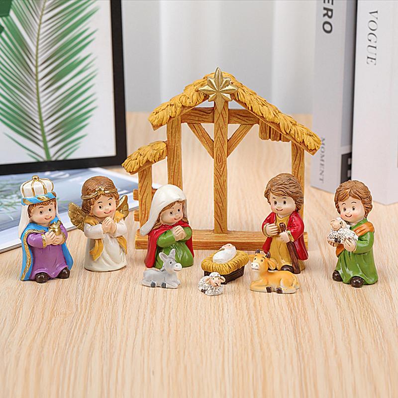 2025 новые Рождественские Рождественские наборы Смола Рождественская фигурка Коллекция Религиозный праздник Младенец Иисус Рождество Каминная полка Декор