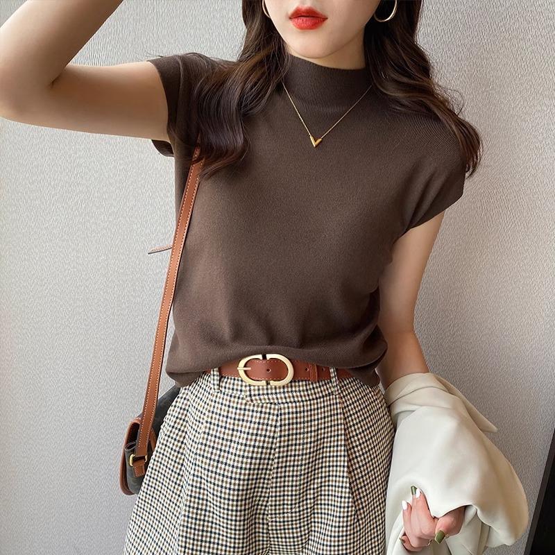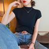 Летний базовый слой, Новая футболка с коротким рукавом, Женский трикотаж, Элегантный, Однотонный, Топ с открытыми плечами и средним воротником