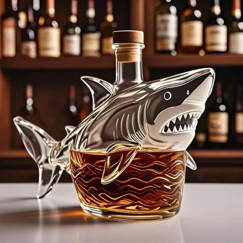 Декантер для виски 'Акула' 320 мл Стаканы для алкоголя 'Акула' Декантер-диспенсер Домашний декор Статуэтка животного Пустая бутылка для ликера Для соседа