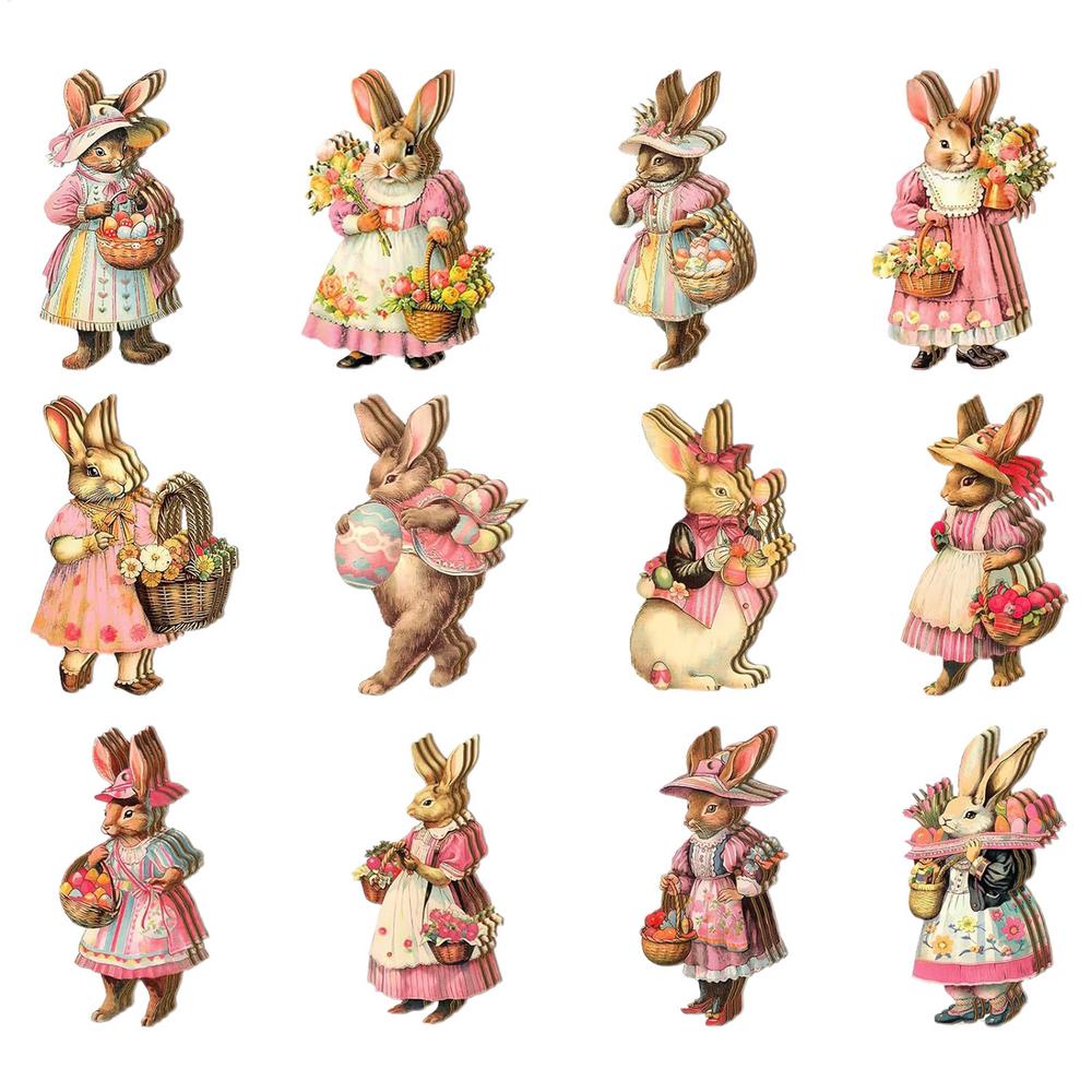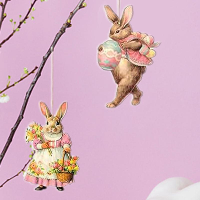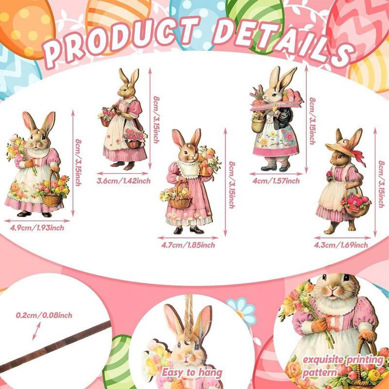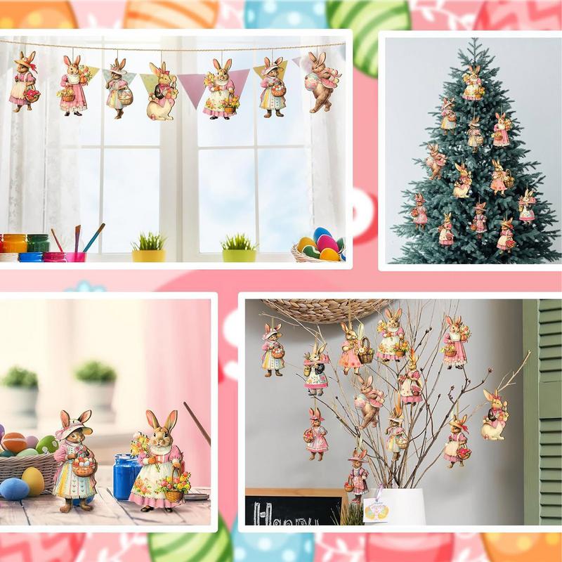 36 шт. Подвесные украшения в виде пасхального кролика в стиле ретро, на тему «Счастливой Пасхи», деревянные подвески на елку в виде яйца и кролика, дверные подвески, фоновое украшение