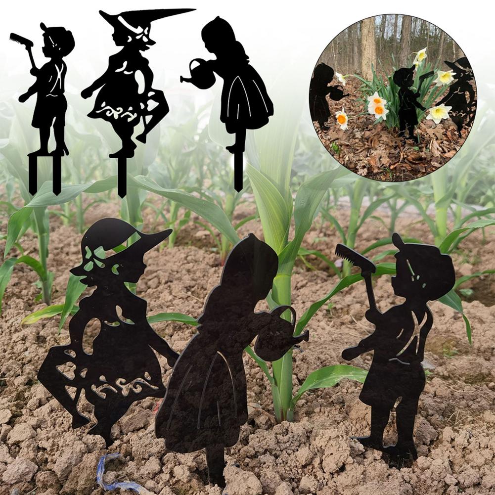 Садовый Декор Искусство Люди Металлическая Статуя Садовое Искусство Садовая Вставка Ребенок Вставка Газон Двор Украшение Усадьба Газон Черный Садовый Декор