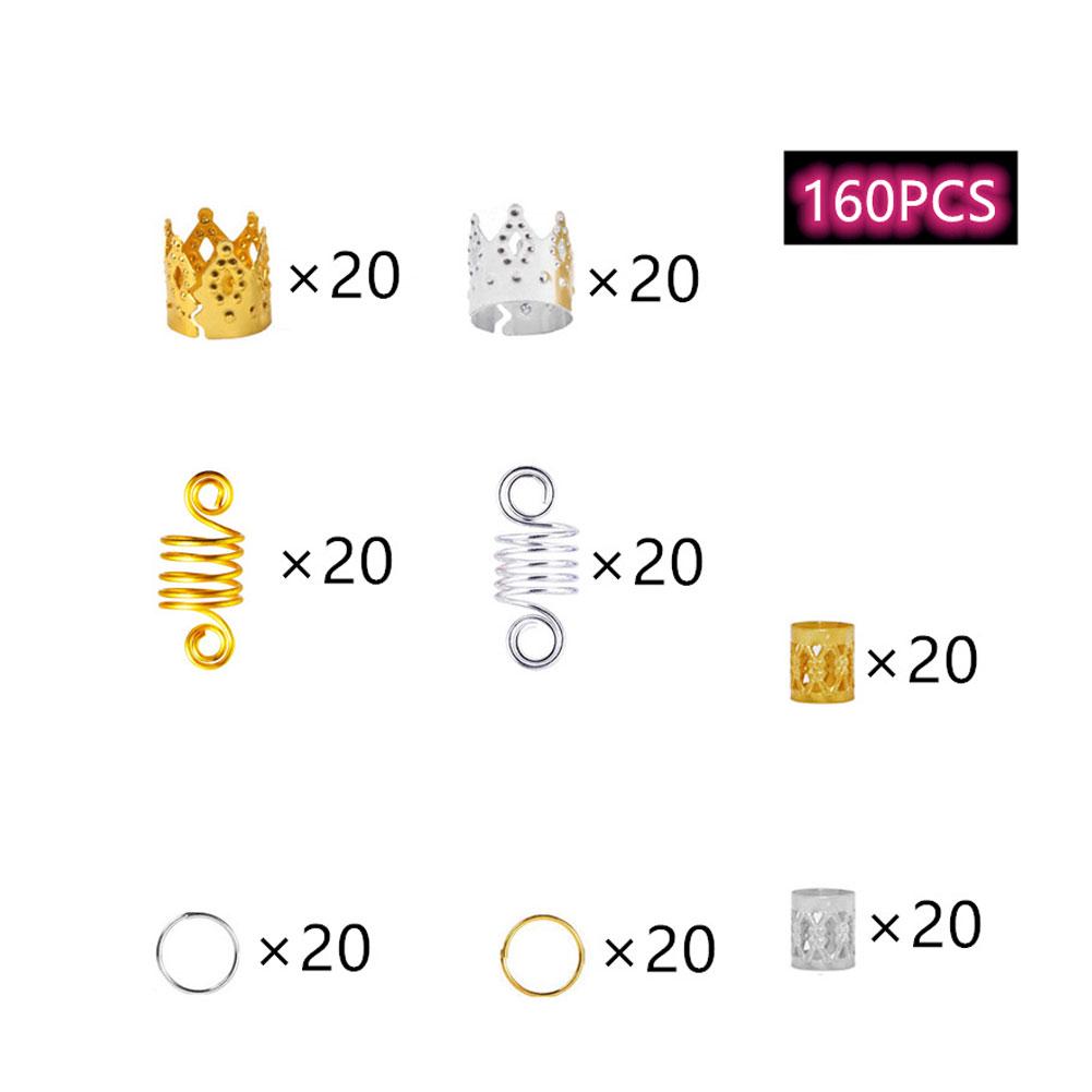 160 шт. Кольца для косичек, дреды, полые модные аксессуары для волос