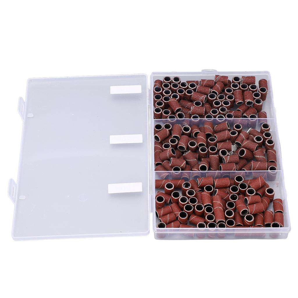 210pcs Sanding Bands for Nail Drill Coarse Fine Pedicures Manicure Sanding Bands with Mandrel 80 120 180 Grit Brown