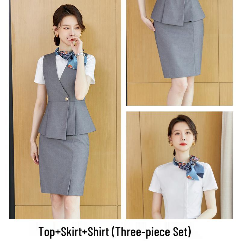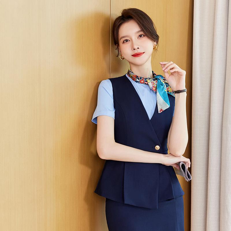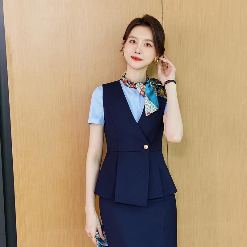 Этот женский профессиональный деловой костюм приталенного кроя изготовлен из высококачественного полиэстера, обеспечивающего как комфорт, так и долговечность.. Разработанный специально для приемной и отдела продаж отеля, он предлагает элегантный и отполированный вид, который повышает профессионализм.. Приталенный крой подчеркивает современный силуэт, обеспечивая уверенный и стильный внешний вид в любой профессиональной обстановке.