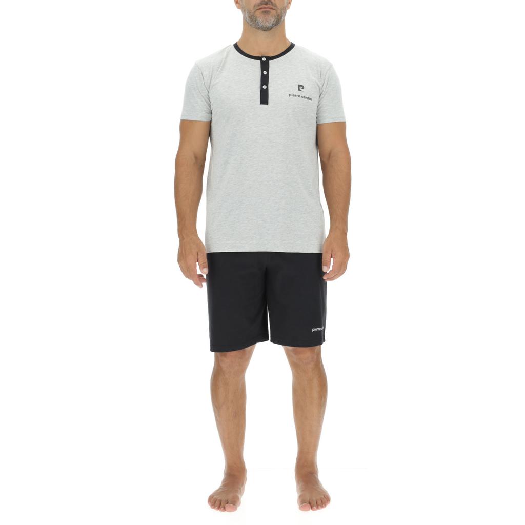 Ensemble Pyjama court homme en coton uni col boutonné & Logo poitrine
