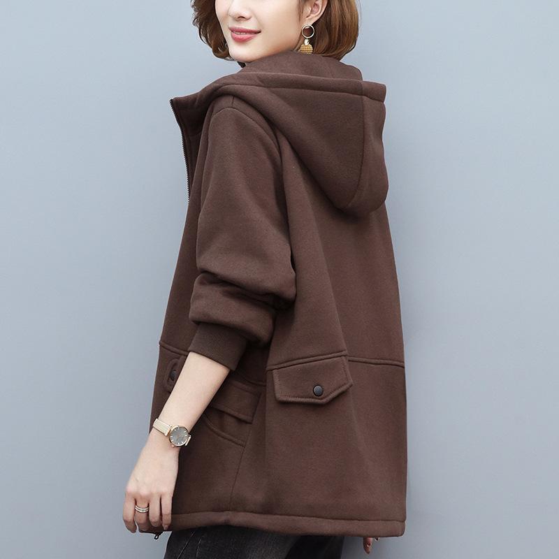 Женский кардиган с капюшоном на флисовой подкладке - Осень/Зима 2024 Повседневный свободный крой для мам среднего возраста