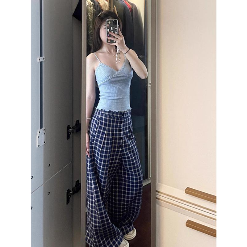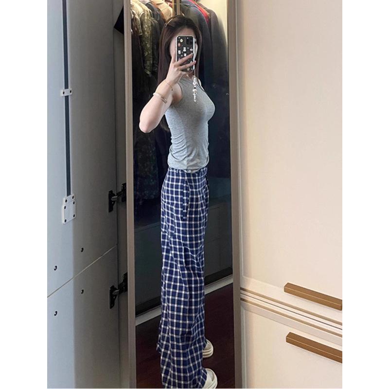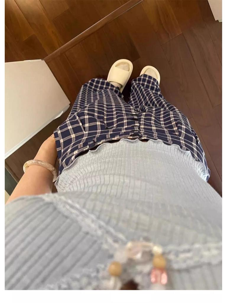 Elevate your autumn wardrobe with these Women's High-Waist Blue Plaid Wide-Leg Trousers from the Early Autumn 2024 Collection. Crafted from high-quality polyester, these trousers feature a chic high waistline that flatters your figure. The blue plaid design adds a trendy yet timeless flair, while the wide-leg style ensures a comfortable and fashionable fit. Perfect for the sportive woman who values both style and practicality, these trousers effortlessly transition from a day at the office to an evening out.