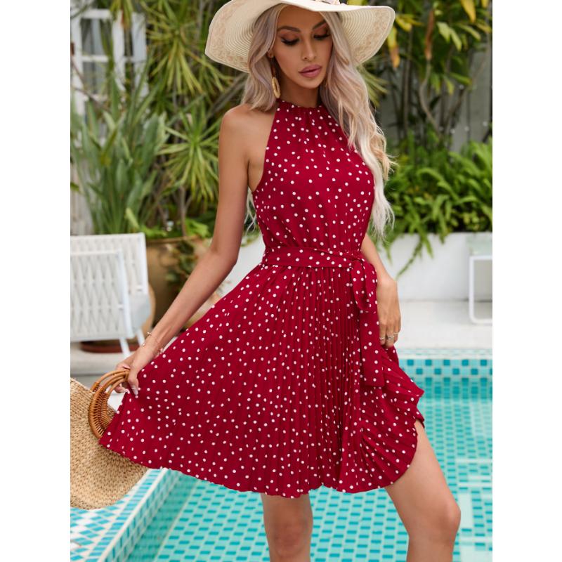 Летнее женское платье с висячим вырезом и плиссированными модными платьями для пляжного отдыха