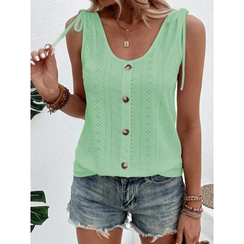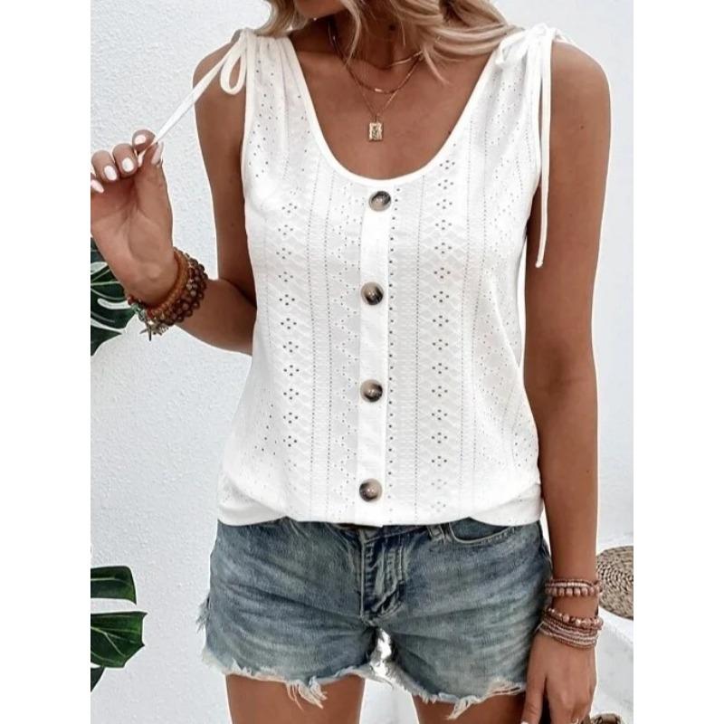 Летний женский жилет, повседневный топ без рукавов с круглым вырезом и завязками на пуговицах