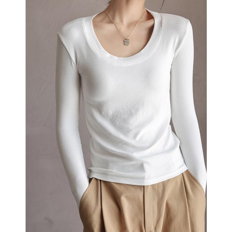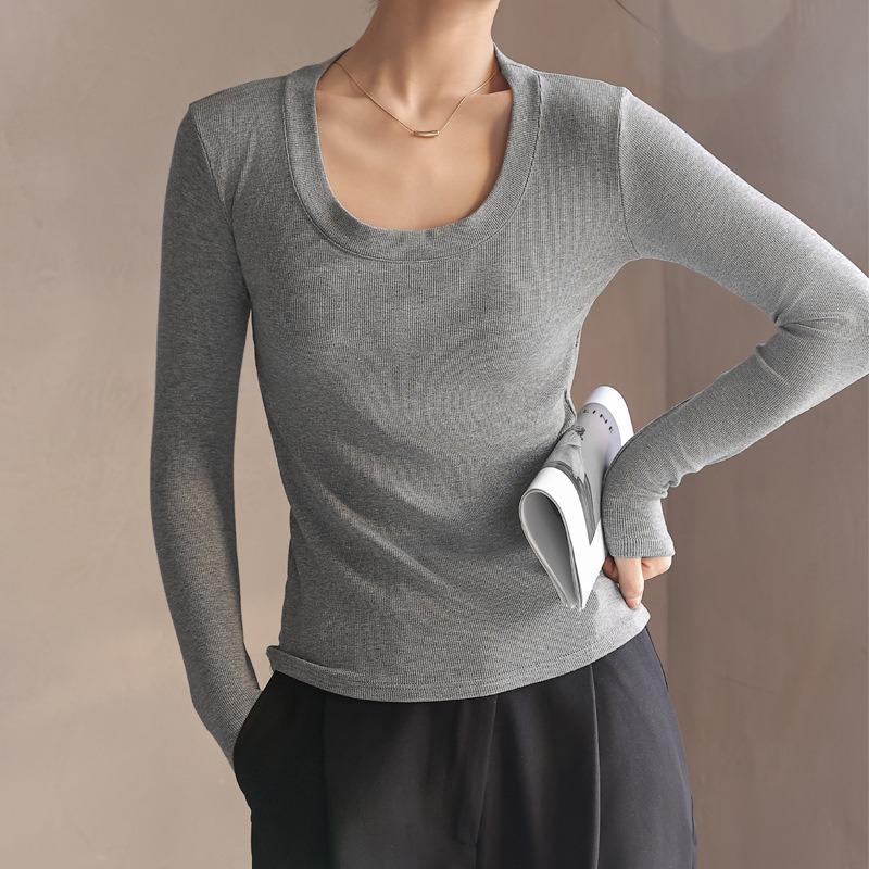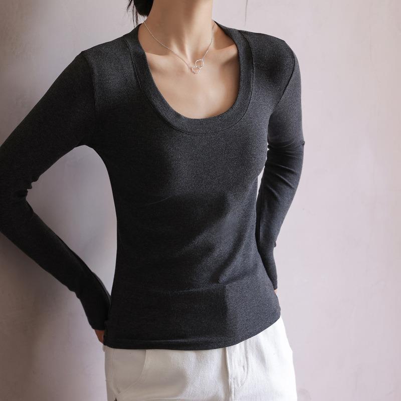 Осенняя женская нижняя рубашка из модала, однотонная, с большим круглым вырезом и длинными рукавами, тонкая узкая внутренняя блузка