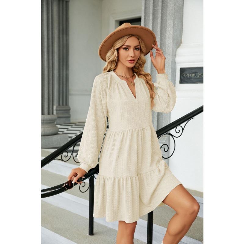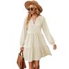 Весенне-осеннее женское платье, однотонное, с v-образным вырезом, свободные плиссированные платья с длинными рукавами