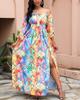 Винтажное платье с V-образным вырезом, длинным рукавом и разрезом, с европейским и американским принтом — купить товар онлайн с бесплатной доставкой до всему миру!