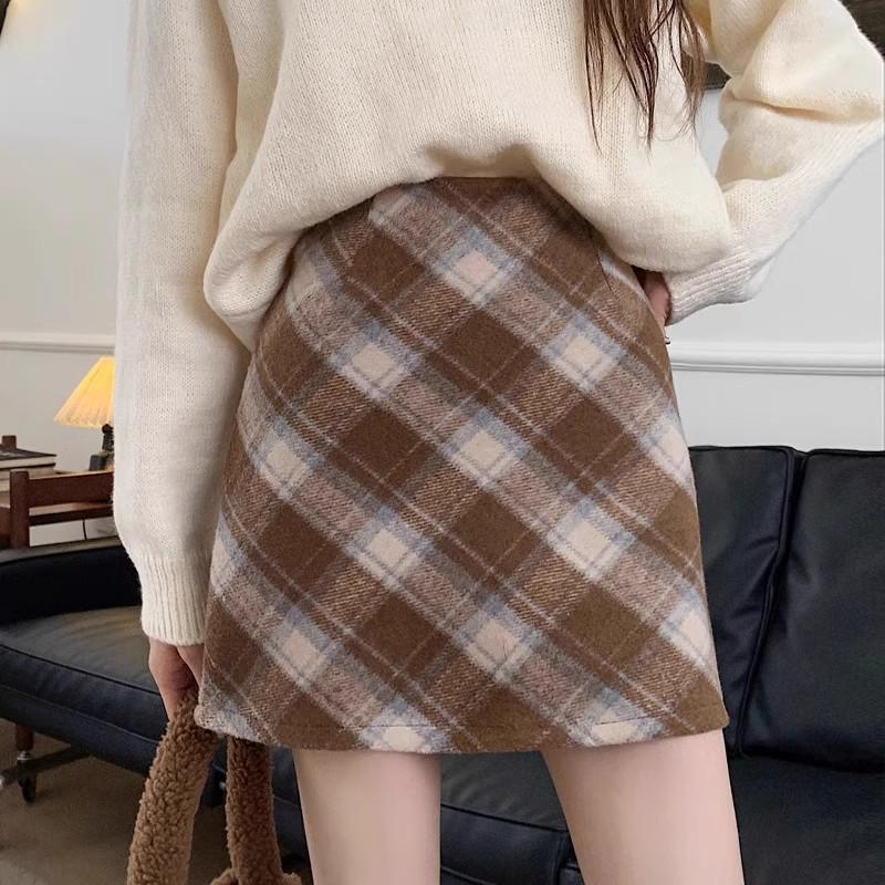 Женская мини-юбка в клетку из смесовой шерсти с завышенной талией в стиле ретро 2025 - Маленькая облегающая А-силуэта для осени/зимы — купить товар онлайн с бесплатной доставкой до всему миру!