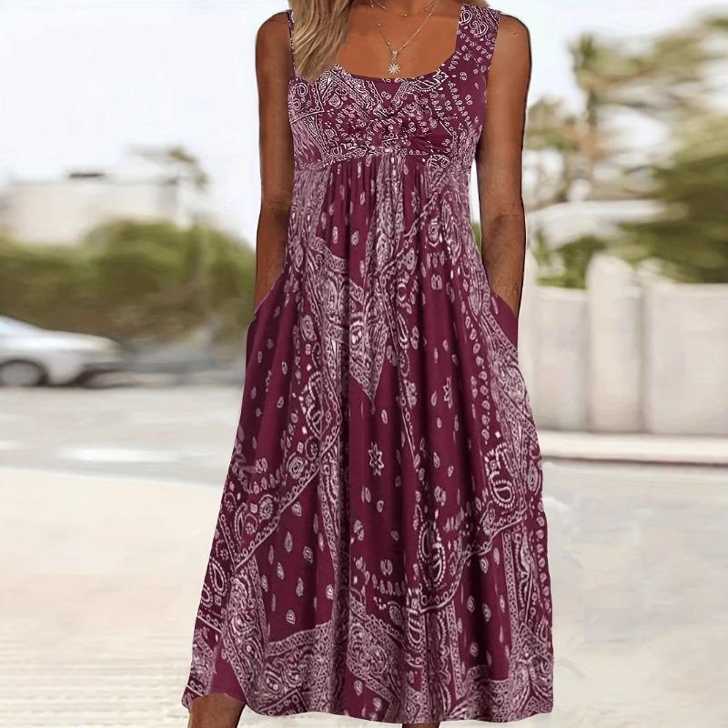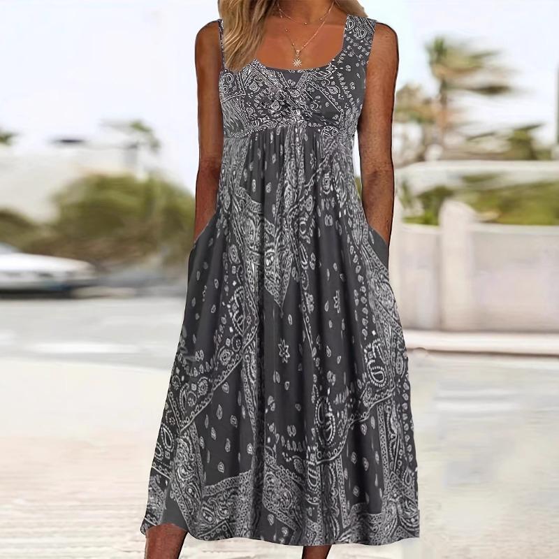 Женское весенне-летнее платье-жилет свободного покроя в праздничном стиле с U-образным вырезом и принтом без рукавов