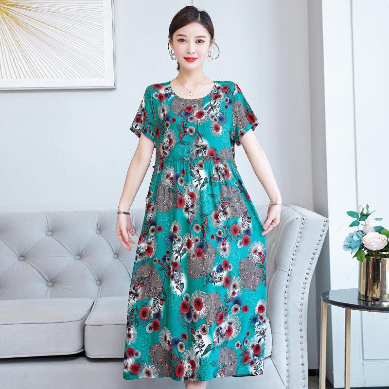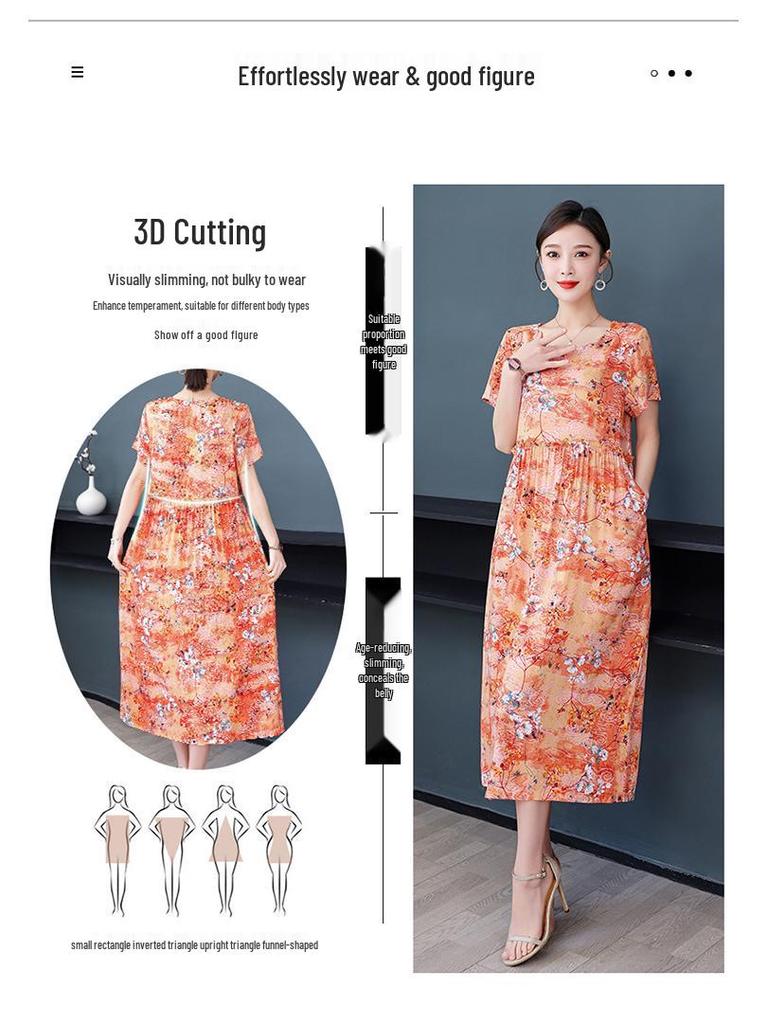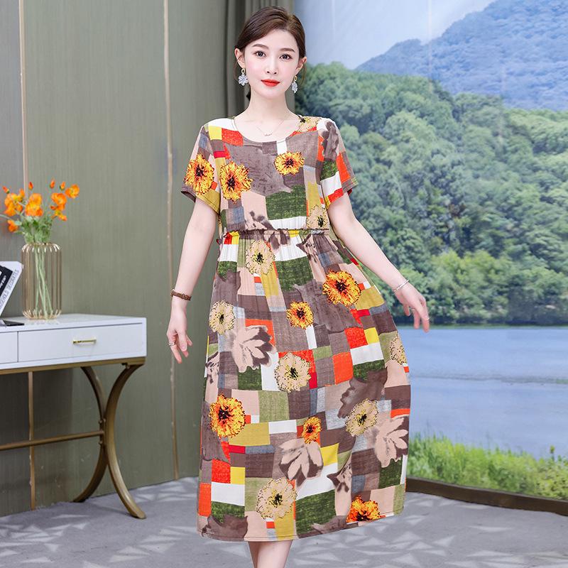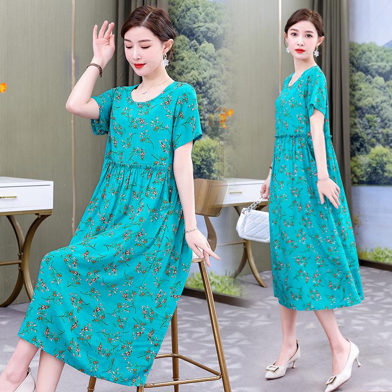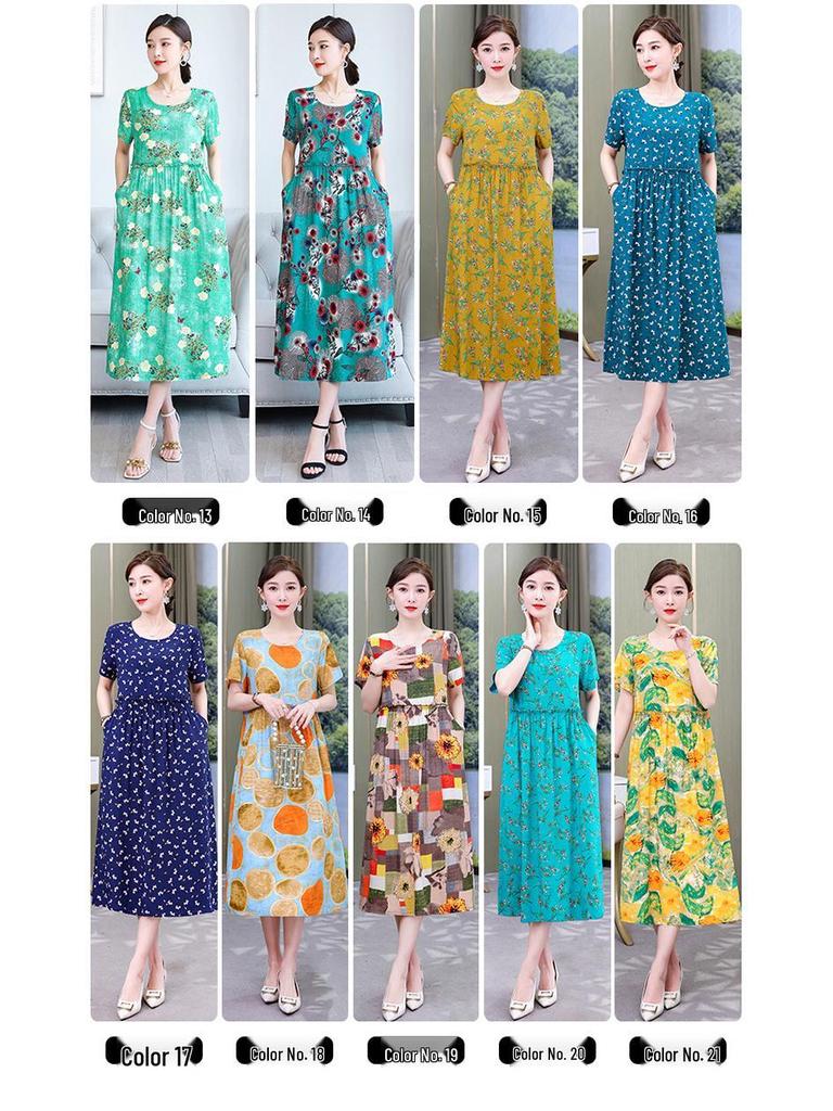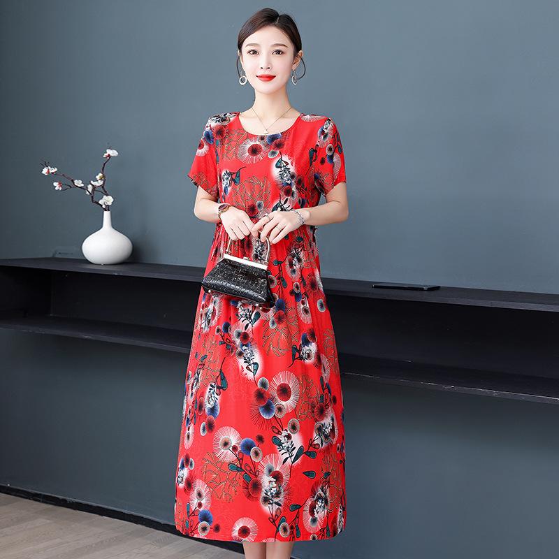 Хлопково-шелковое платье с цветочным принтом большого размера для женщин - Летняя мода, Элегантное длинное платье-свинг