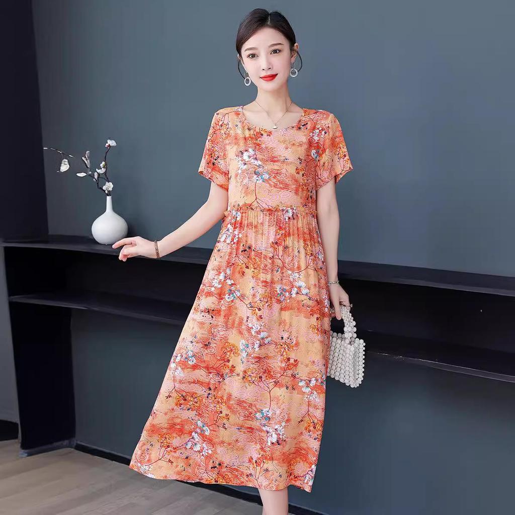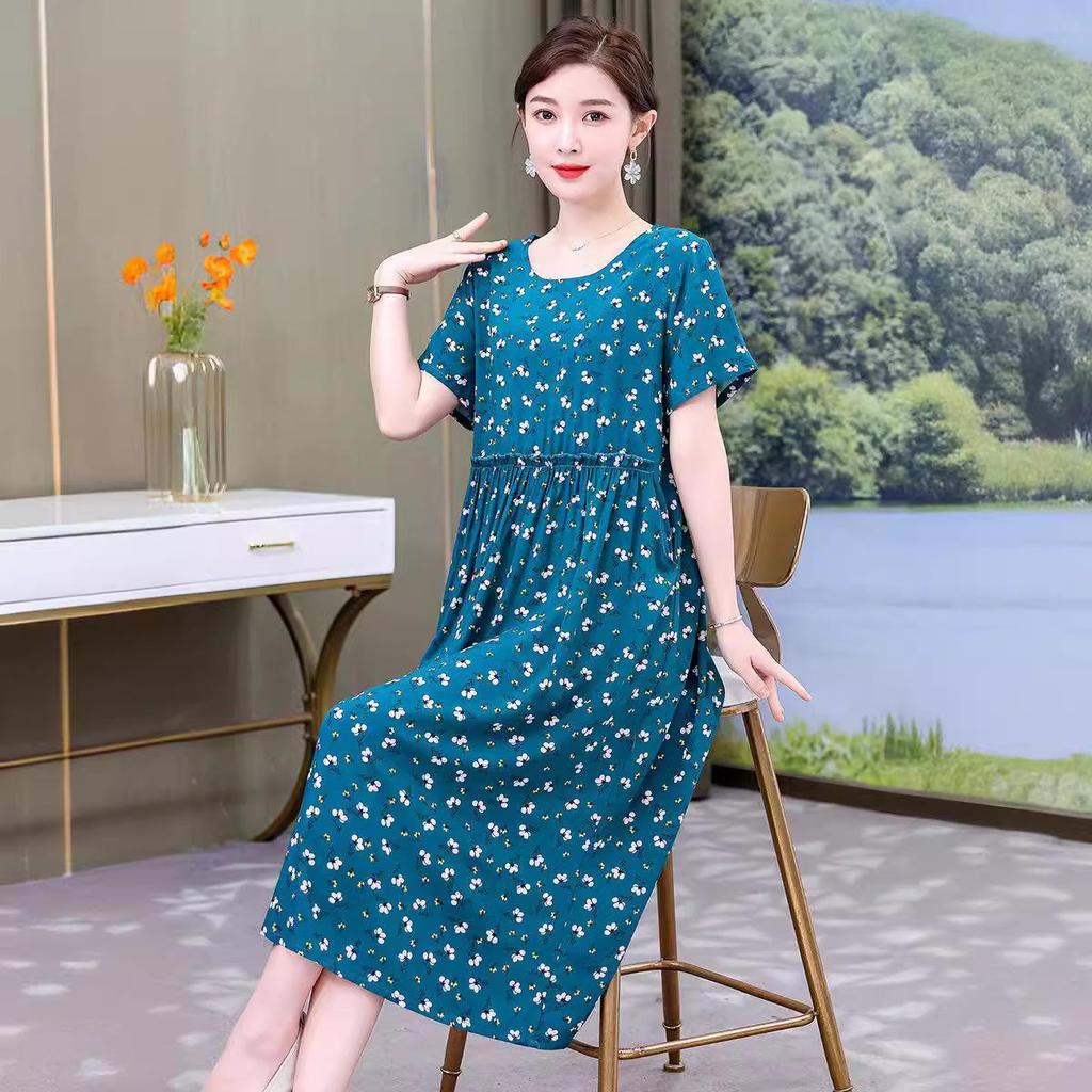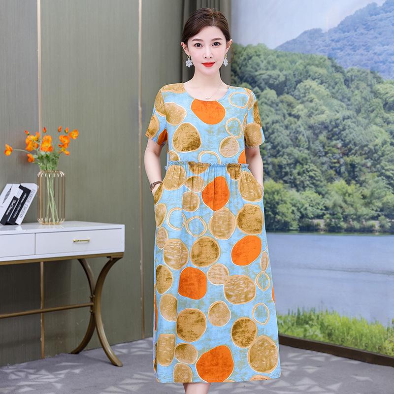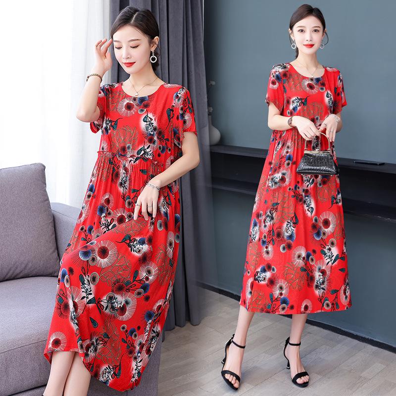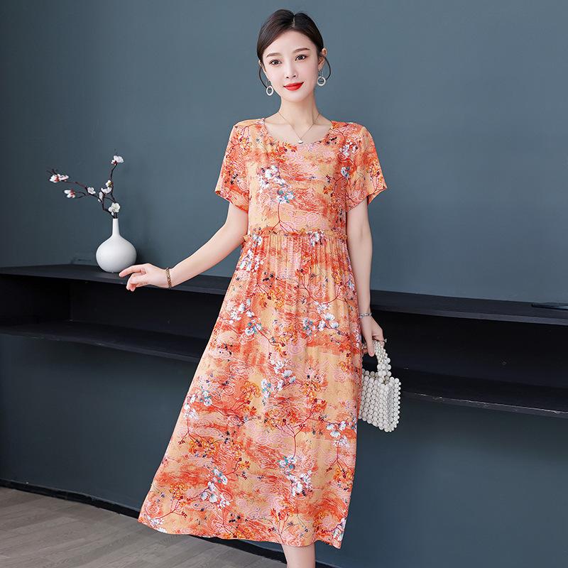 Хлопково-шелковое платье с цветочным принтом большого размера для женщин - Летняя мода, Элегантное длинное платье-свинг