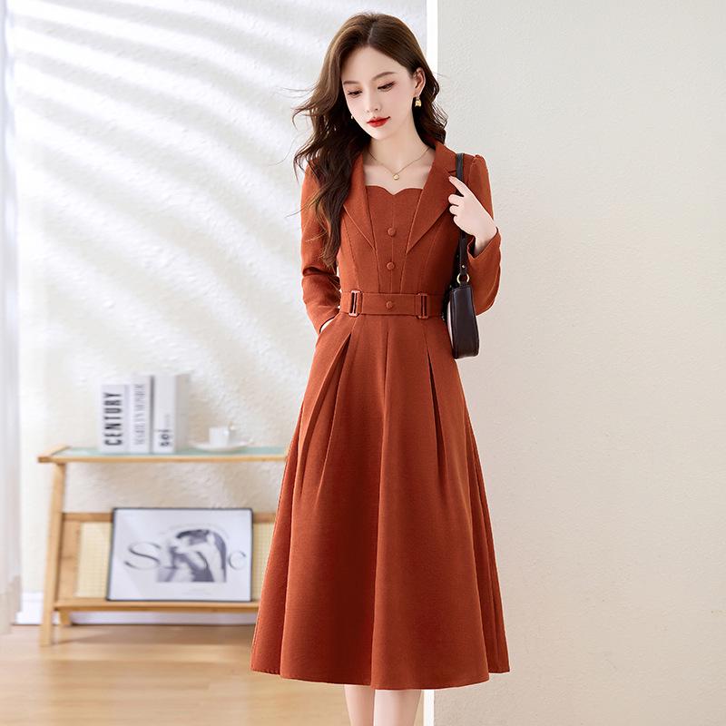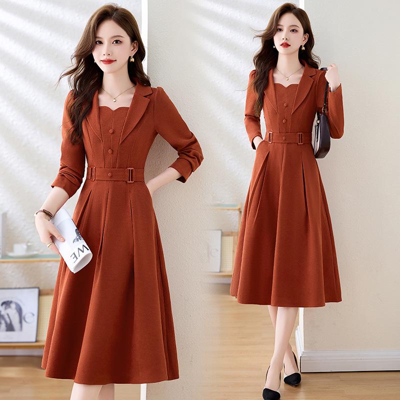 2024 Осеннее женское корейское платье А-силуэта приталенного кроя с завязкой - SW1857