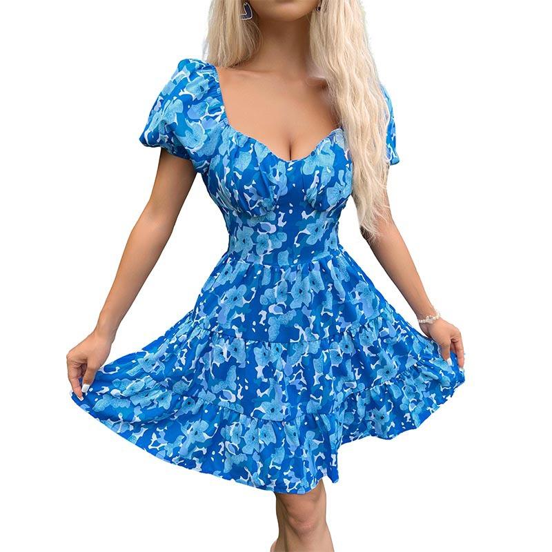 Летние женские платья Модные милые платья с короткими рукавами с открытой спиной и оборками