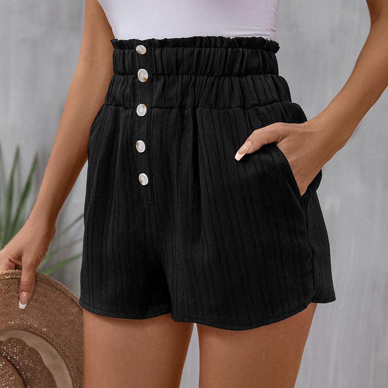 Летние женские шорты, повседневные шорты с сотней карманов, шорты на пуговицах с высокой талией, короткие брюки с эластичной резинкой на талии