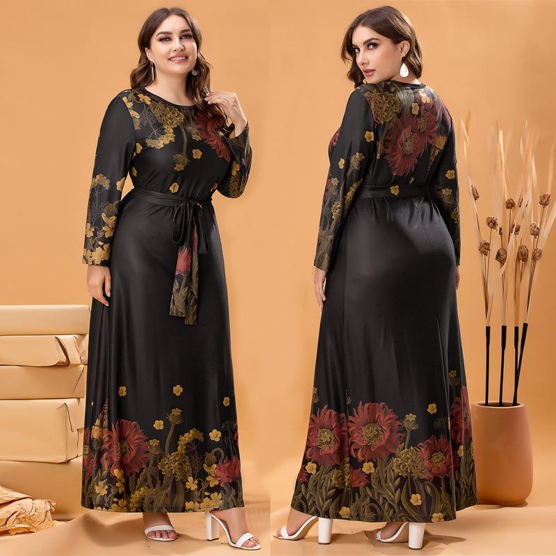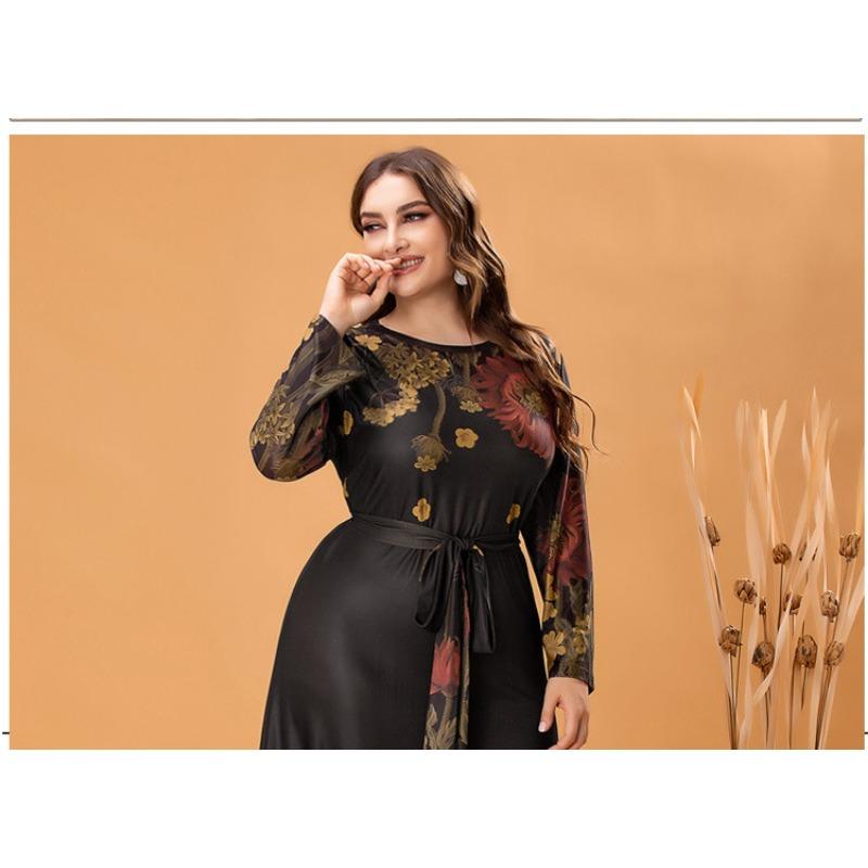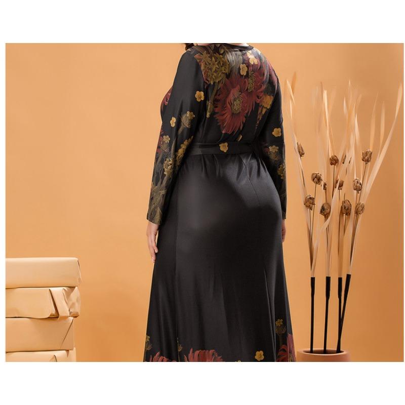 Элегантное женское трикотажное платье с длинными рукавами больших размеров