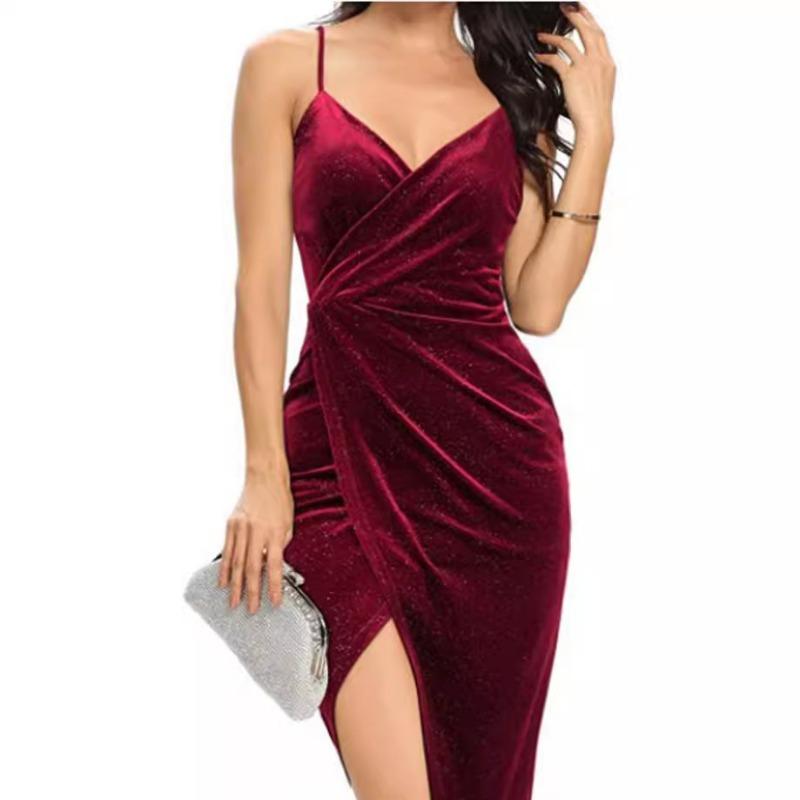 Женское новое платье из бархата золотого цвета с бретелью через шею, открытое сексуальное платье золотого цвета для ночного клуба