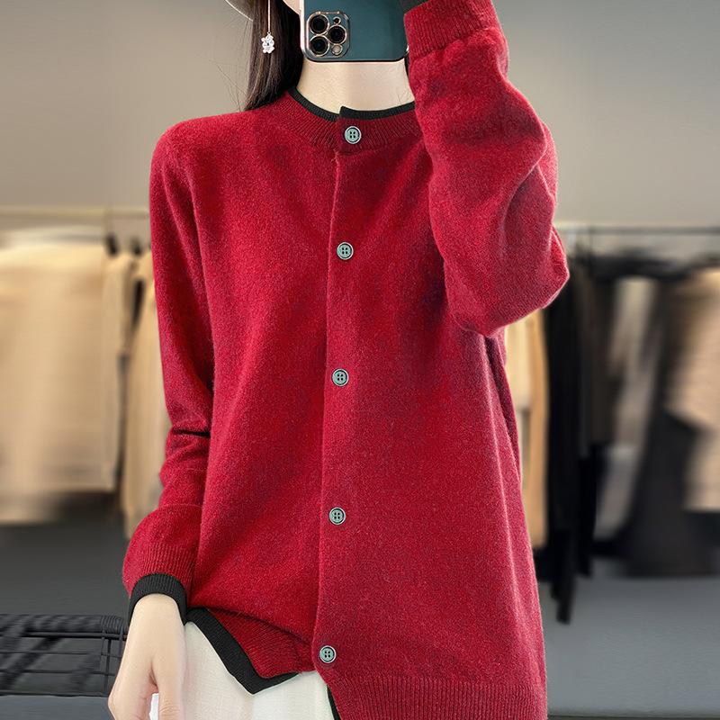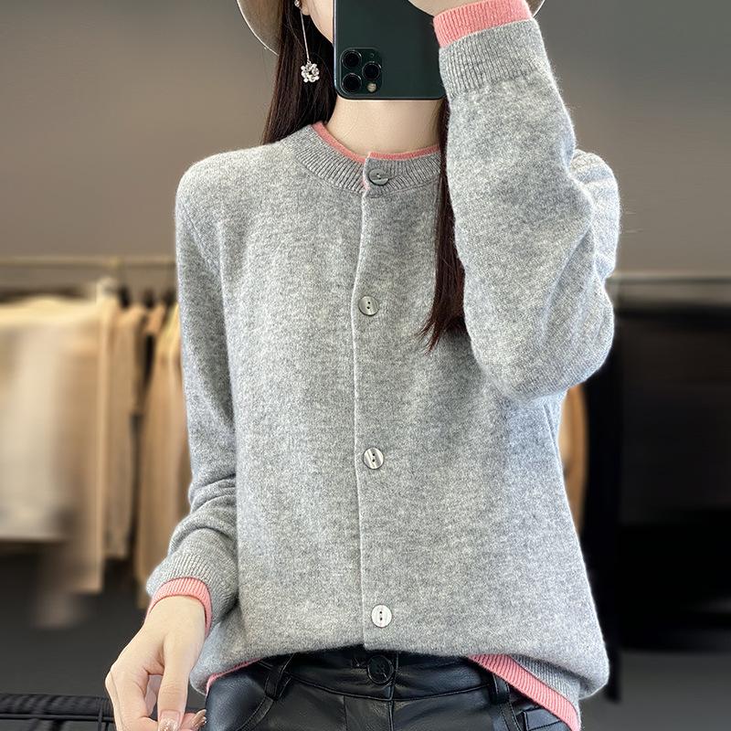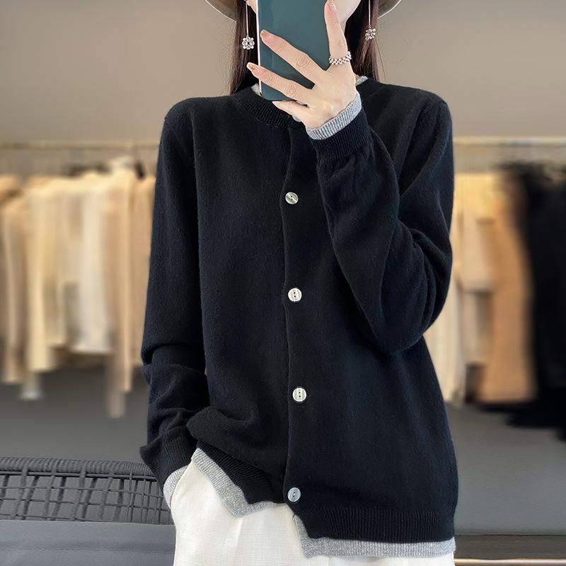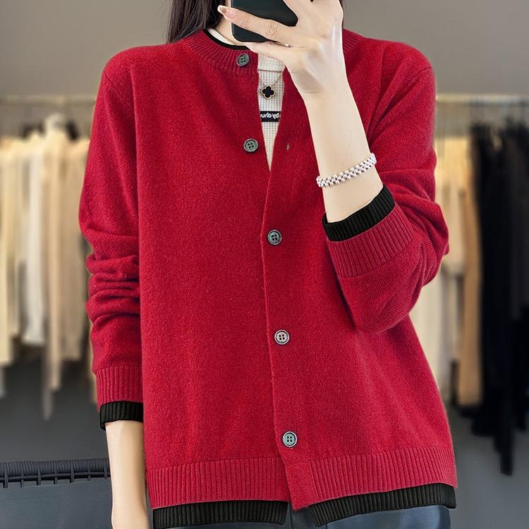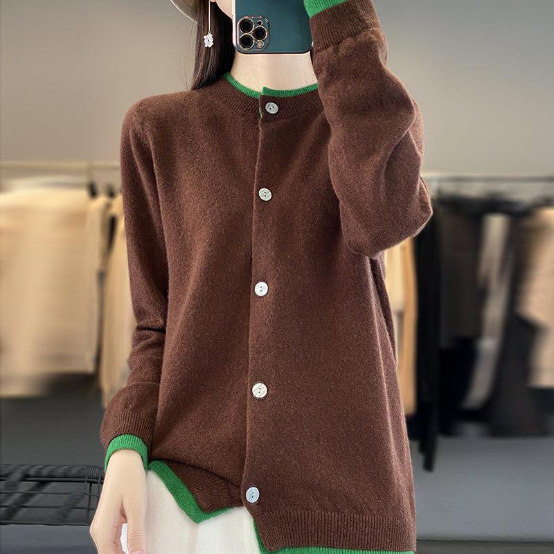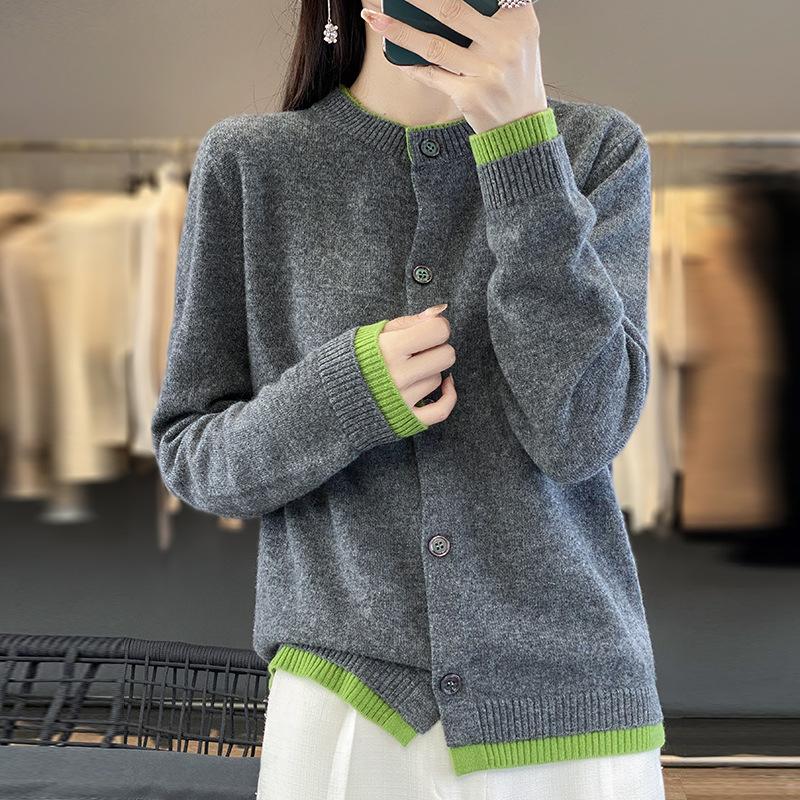 Вязаный кардиган с круглым вырезом, контрастного цвета, женская осенне-зимняя кофта, цветная блокировка снаружи, короткий параграф, утолщенные топы
