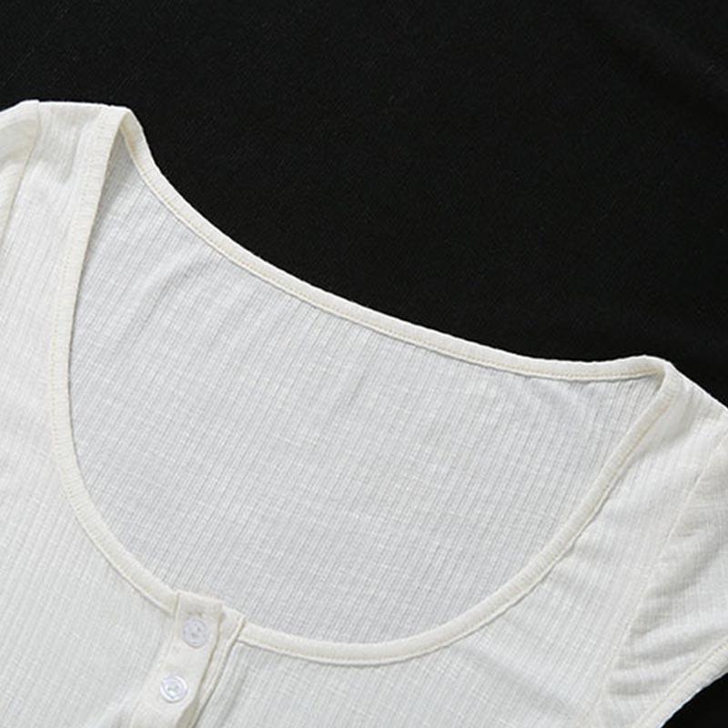 Летняя модная женская футболка с U-образным воротником, сплошной цвет, сексуальный топ для похудения пупка, топы с короткими рукавами