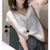 Летний тонкий ажурный трикотажный жилет с V-образным вырезом, женские топы