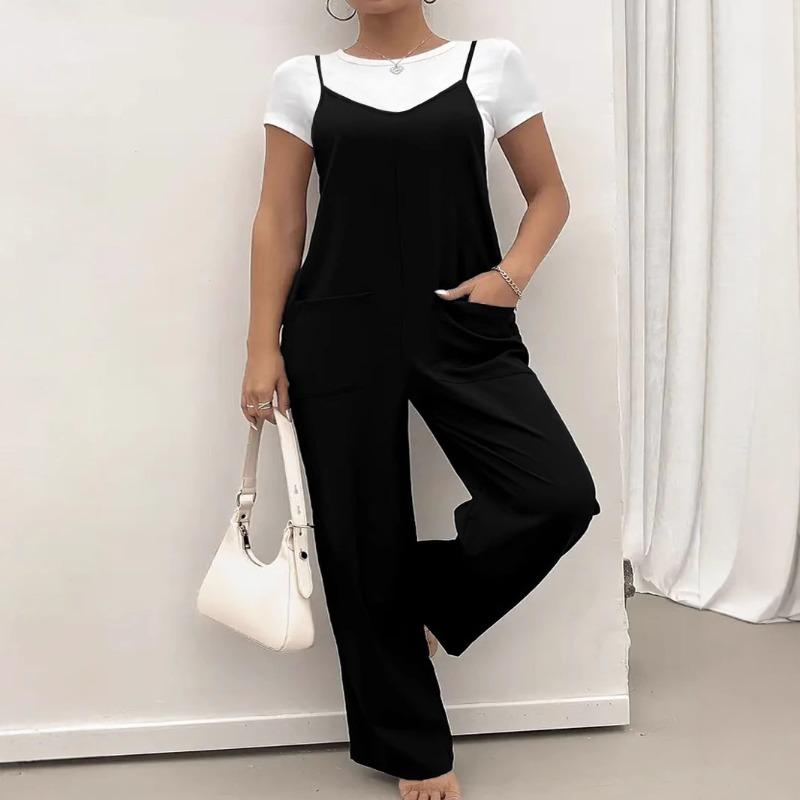 Женский летний новый однотонный повседневный темпераментный пригородный карманный комбинезон на подтяжках
