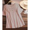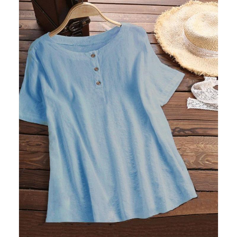 Женская однотонная рубашка с короткими рукавами и круглым вырезом на пуговицах, весна-лето, футболка из чистого хлопка и льна — купить товар онлайн с бесплатной доставкой по всему миру!