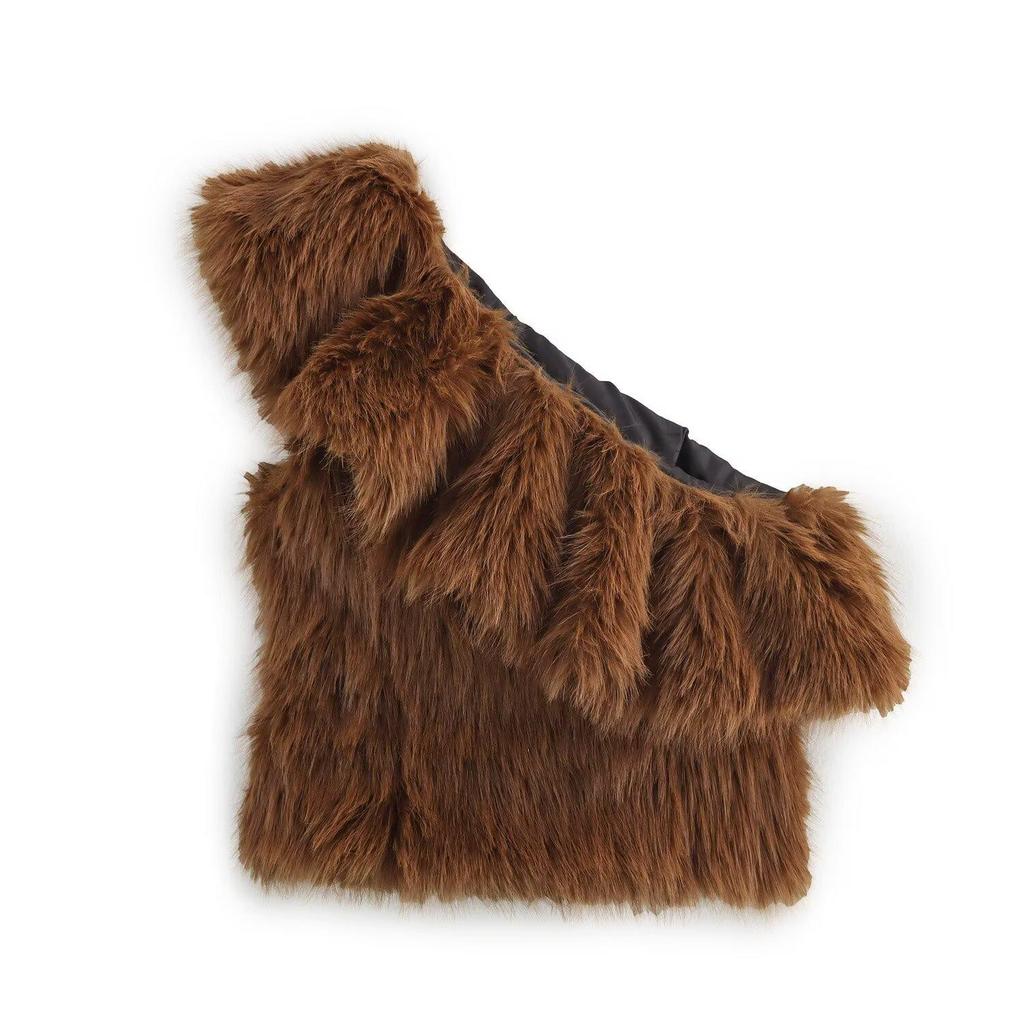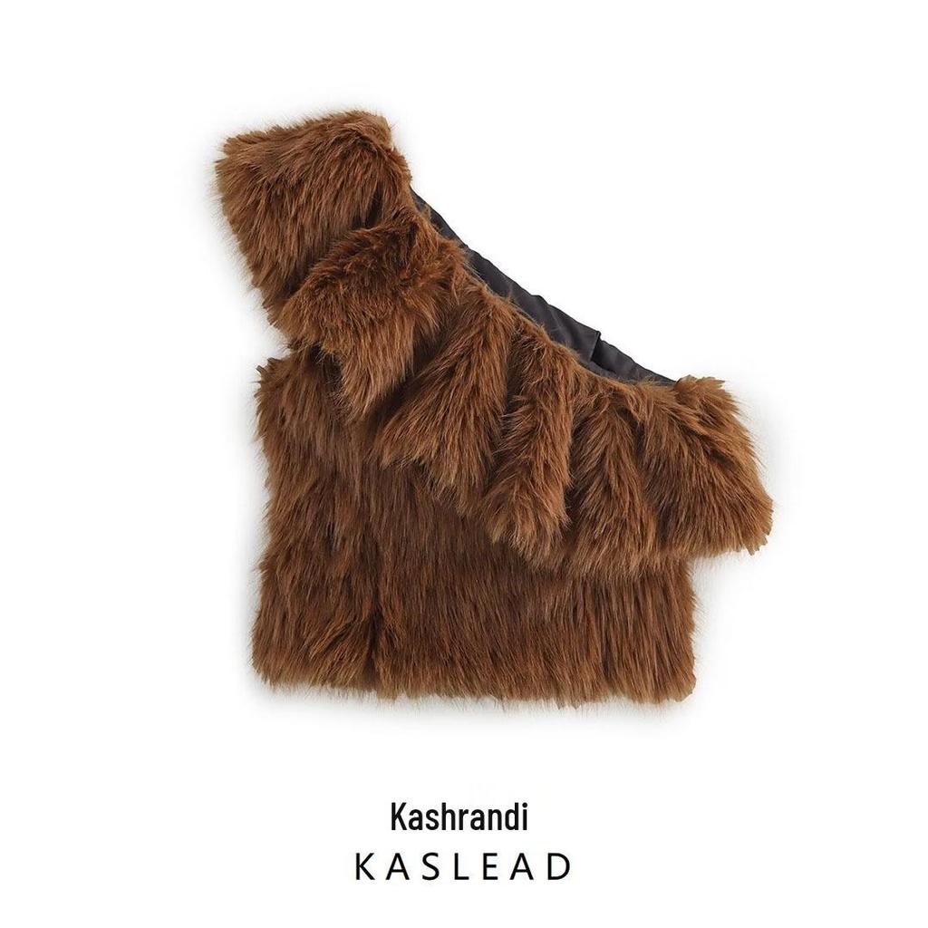 Зима 2024 Женский Европейский и Американский Стиль Меховой Топ на Одно Плечо