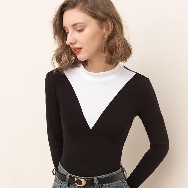 Осенне-зимняя хлопковая тонкая бархатная приталенная рубашка с высоким воротником и полувысоким воротником, женская эластичная контрастная рубашка с длинными рукавами