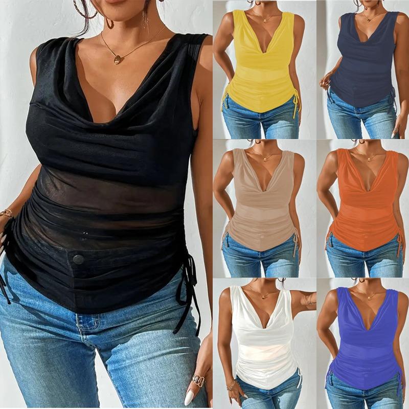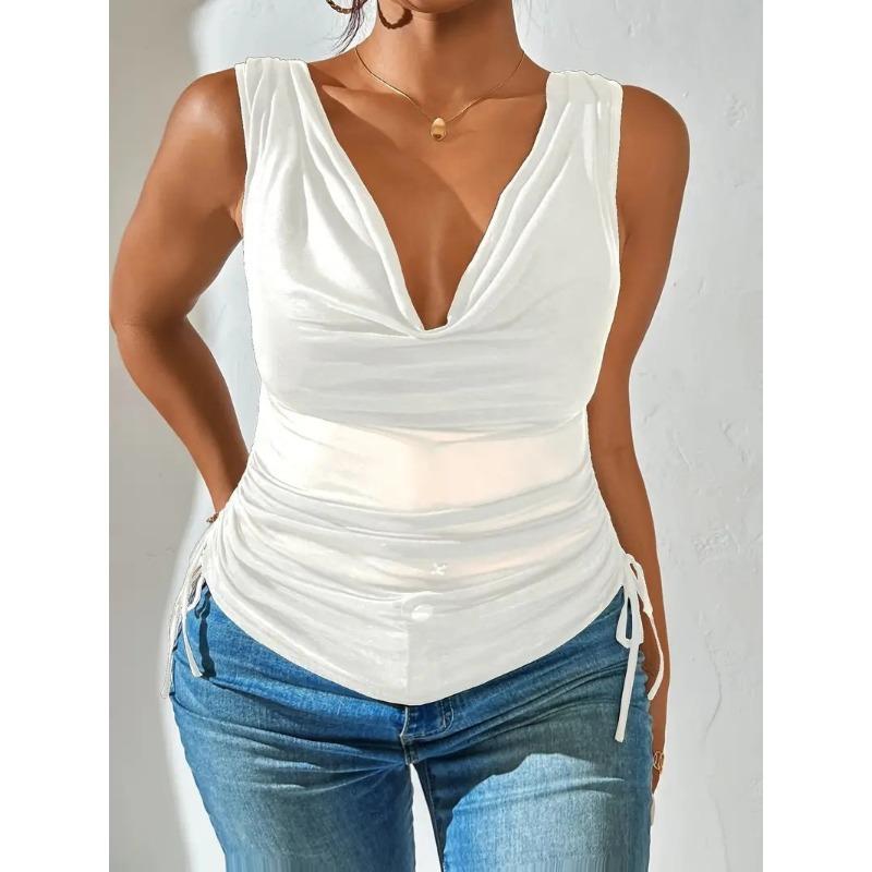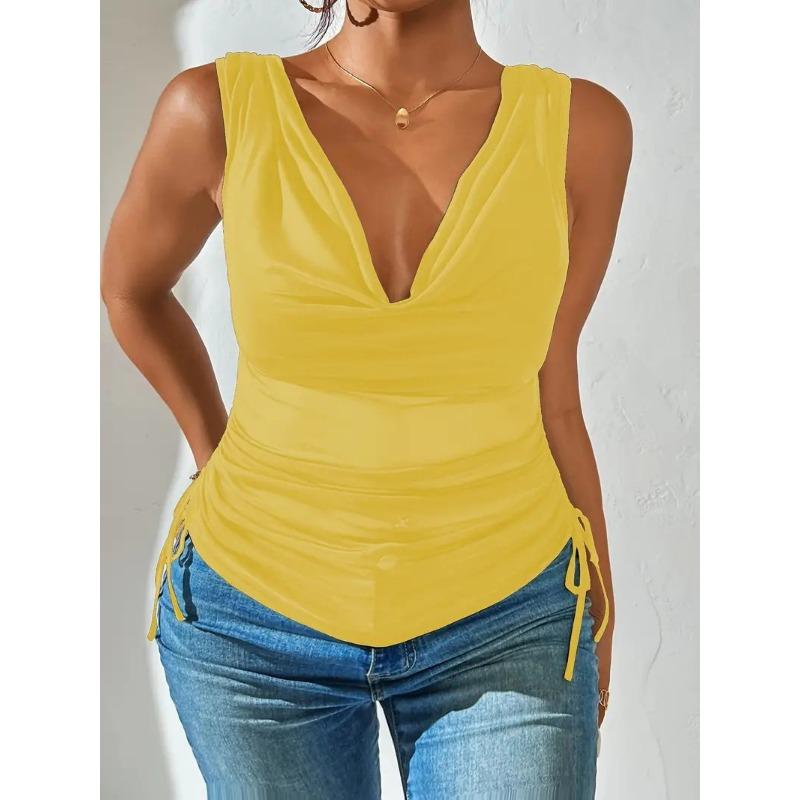 Футболка-майка Yufeng с коротким топом и высокой талией, без рукавов и V-образным вырезом
