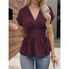 Весенний V-образный вырез, приталенный пояс, однотонная юбка с рукавами на плечах, плиссированный подол, топ с Т-образными рукавами