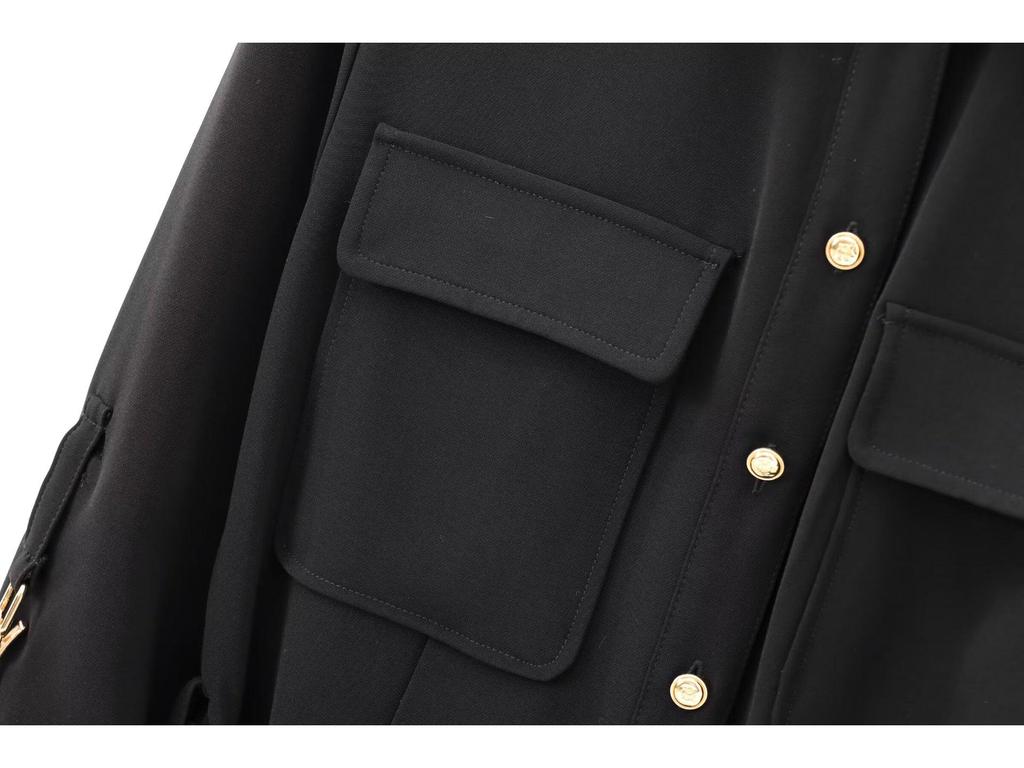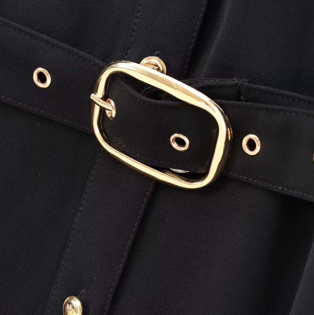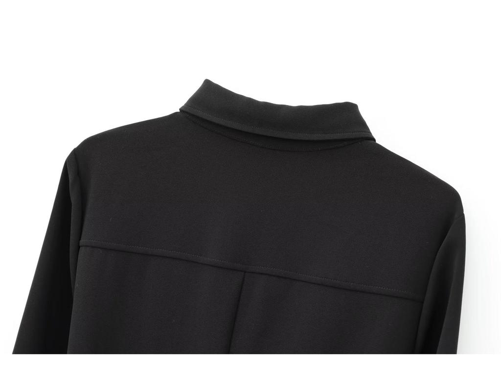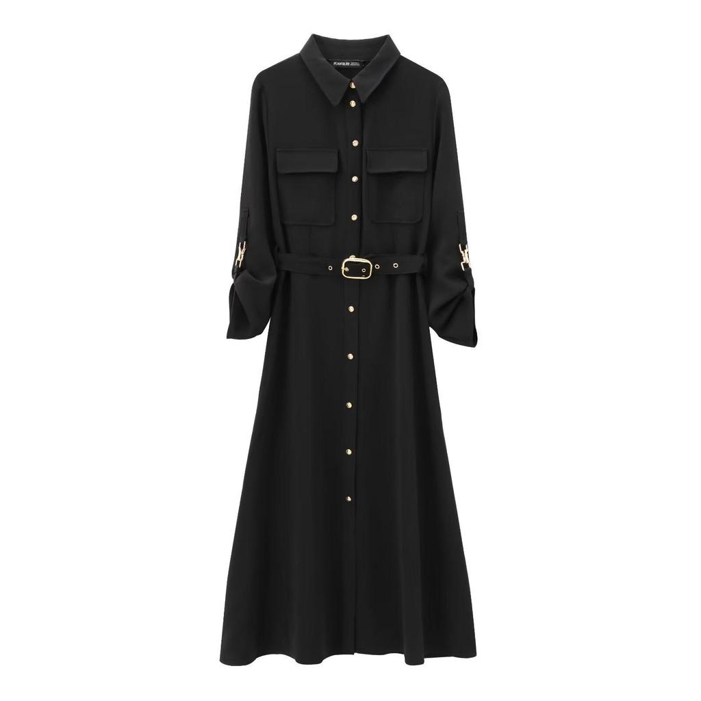 Женское миди-платье в европейском и американском стиле на осень 2024 года с поясом и отложным воротником и длинным рукавом