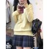 Свитер с V-образным вырезом в университетском стиле — свободный крой, однотонный, с длинными рукавами, идеально подходит для осени и зимы. — купить товар онлайн с бесплатной доставкой до всему миру!
