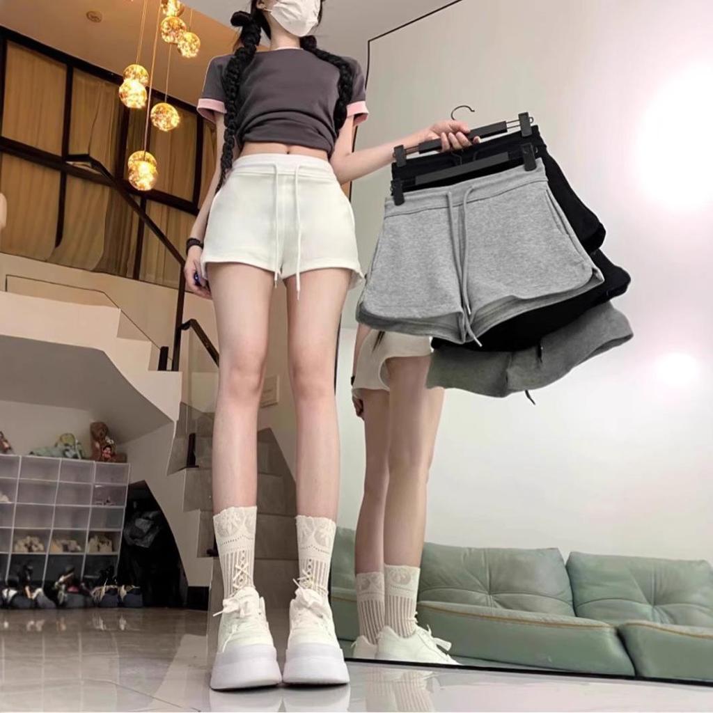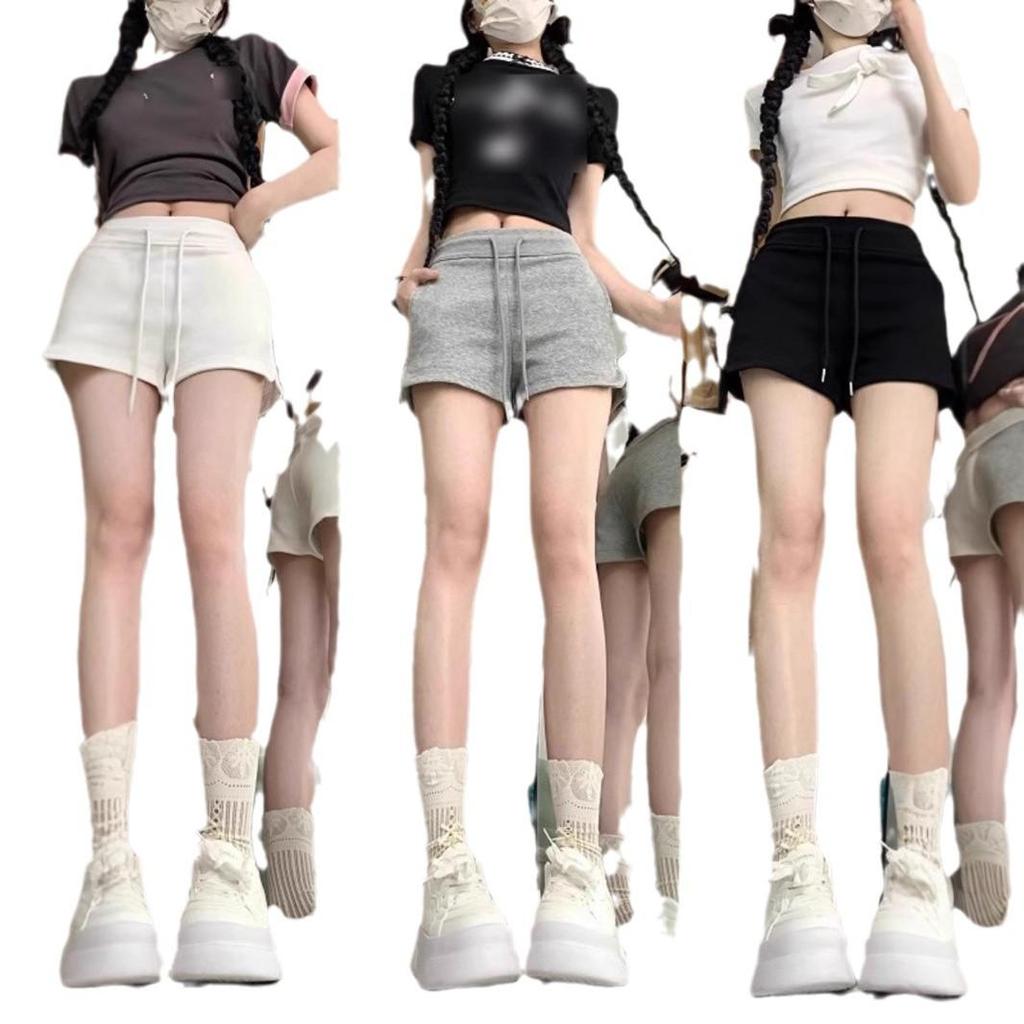 Женские повседневные шорты с черной кулиской Spicy Girl: Осень Эластичная талия, Прямые брюки с разрезом, Мода однотонного цвета.