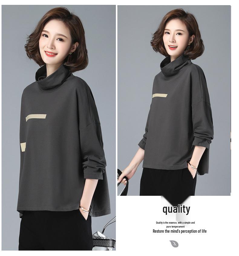 Женский флисовый свитшот с высоким воротом 2024 - Универсальный свободный топ на весну/осень