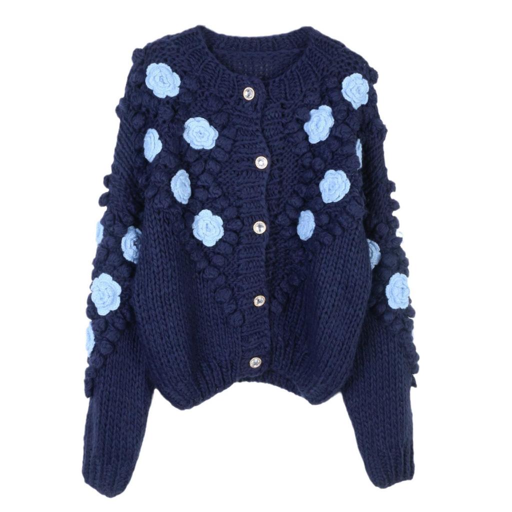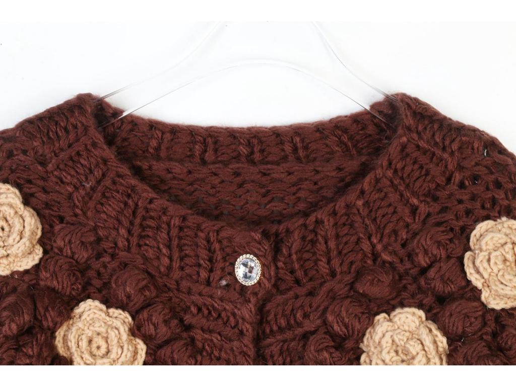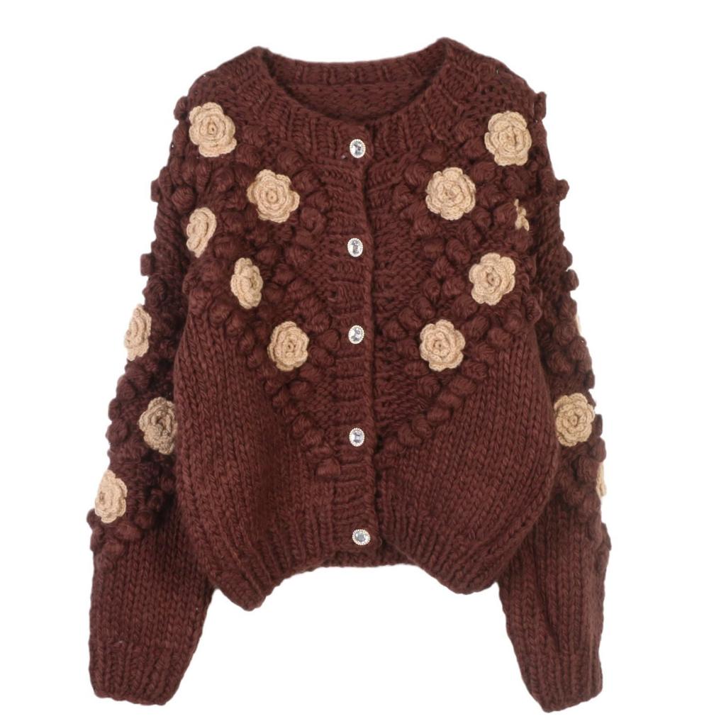 Французский шик, омолаживающий кардиган крупной вязки с 3D-цветочным узором – Свитер-пальто на осень/зиму