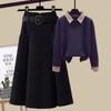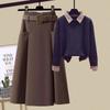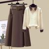 2023 Высококачественный женский комплект из трикотажного свитера и юбки А-силуэта из шерстяной смеси — купить товар онлайн с бесплатной доставкой до всему миру!
