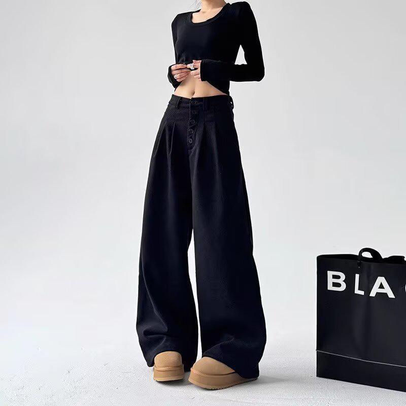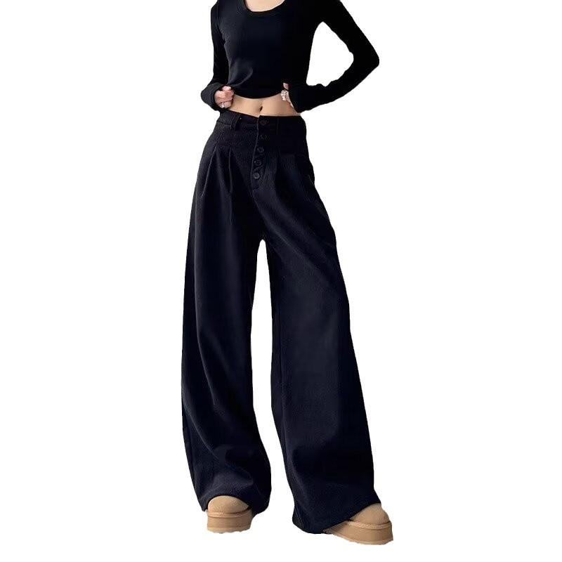Женские вельветовые брюки широкого кроя на осень/зиму 2024 - Однобортный плиссированный дизайн, приталенный силуэт