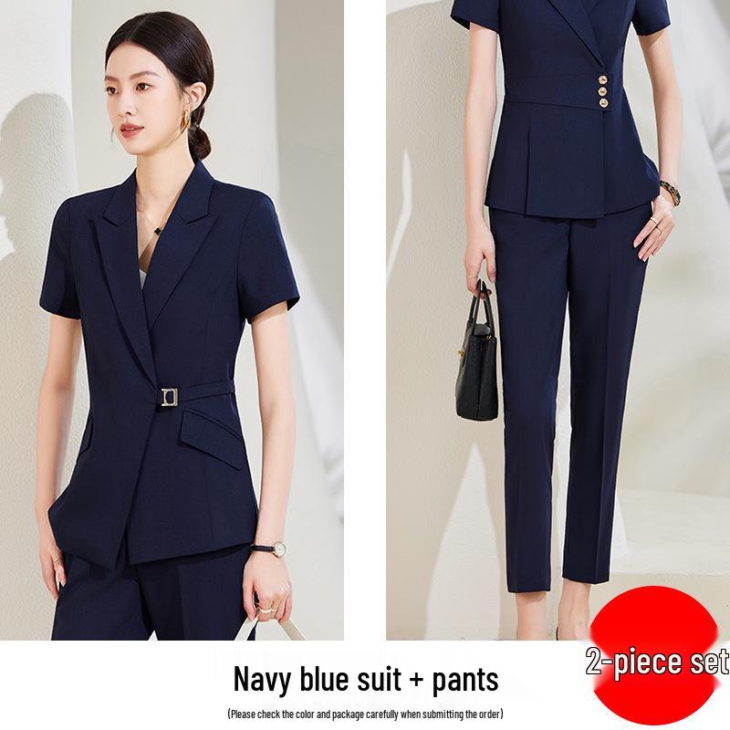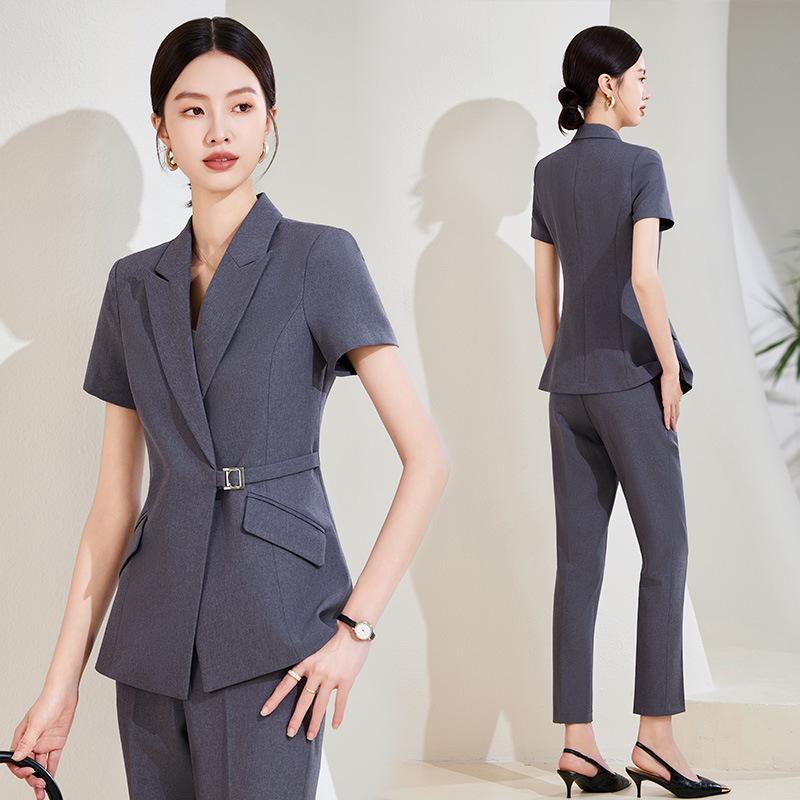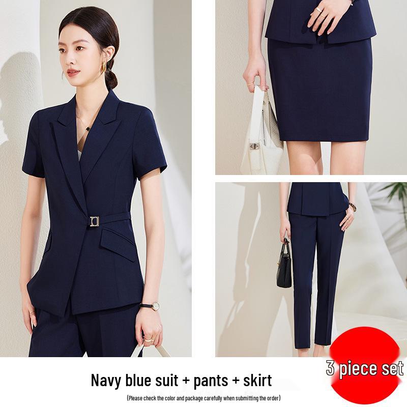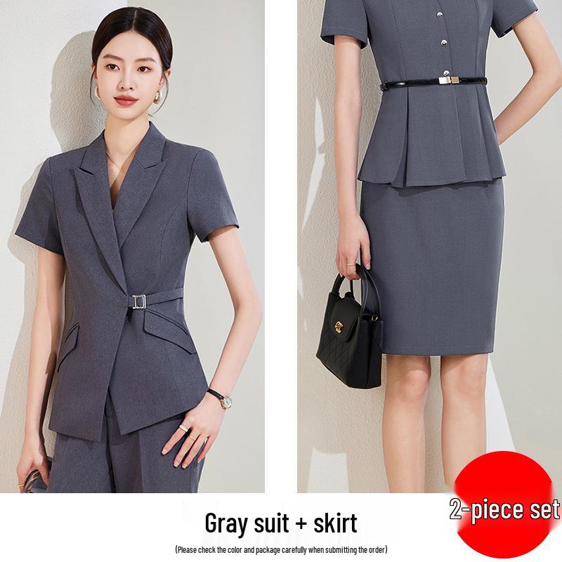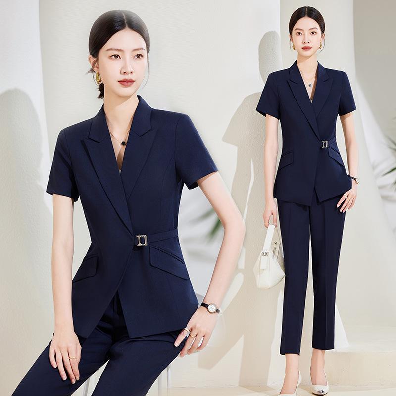 Оцените элегантность и профессионализм этого высококлассного женского летнего костюма, разработанного специально для изысканной атмосферы ювелирных магазинов и магазинов золота.. Этот костюмный комплект, изготовленный из высококачественного полиэстера, обеспечивает стильную и удобную посадку, идеально подходящую для поддержания изысканного внешнего вида в теплое время года.. Элегантный дизайн обеспечивает изысканный вид, повышая уверенность и профессионализм в вашей рабочей обстановке.. Будь то помощь клиентам или управление операциями магазина, этот костюмный комплект сшит на заказ, чтобы соответствовать требованиям роскошной розничной среды.