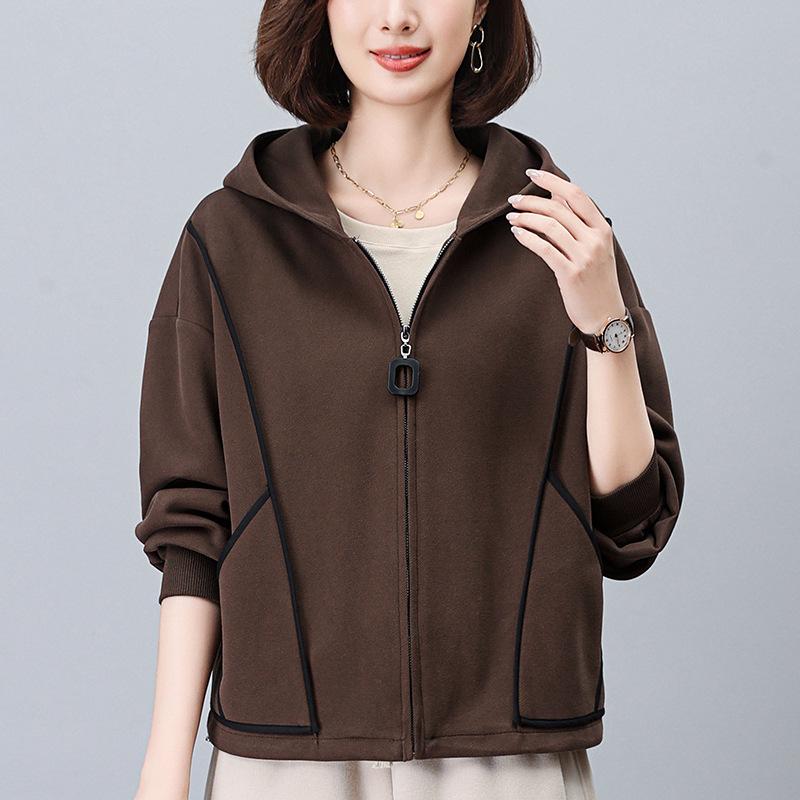 Женская флисовая куртка с капюшоном 2024: Стильный, Молодящий Кардиган Осень/Зима для Мам Среднего Возраста
