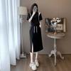 Европейский шик летний комплект из двух частей с открытыми плечами: Женская повседневная миди-юбка с короткими рукавами, визуально омолаживающая