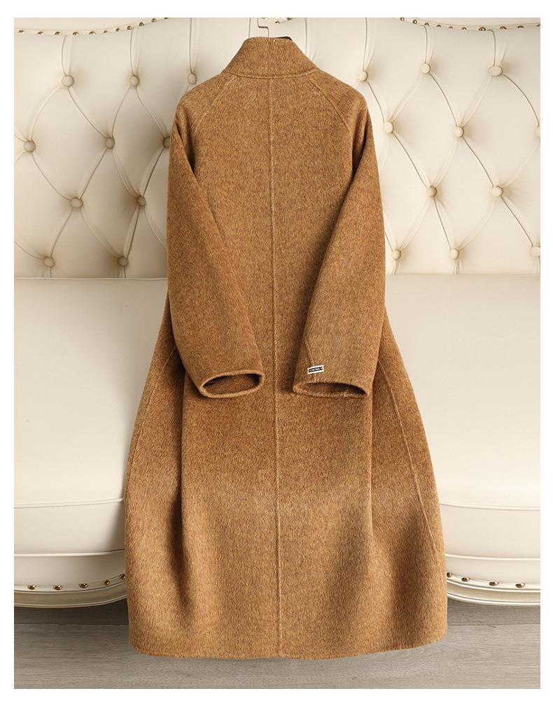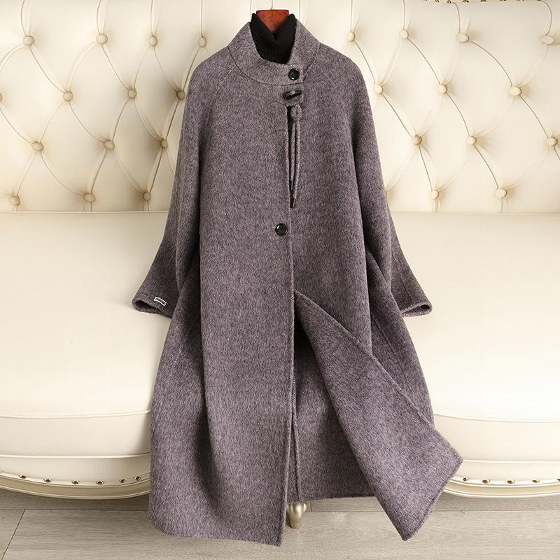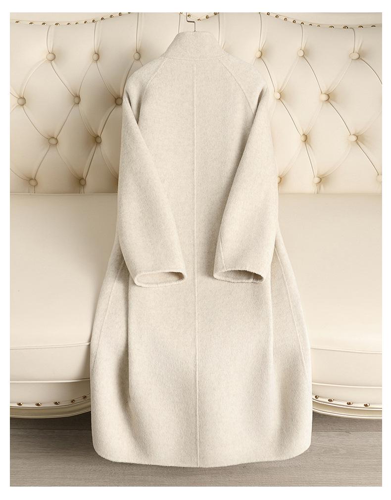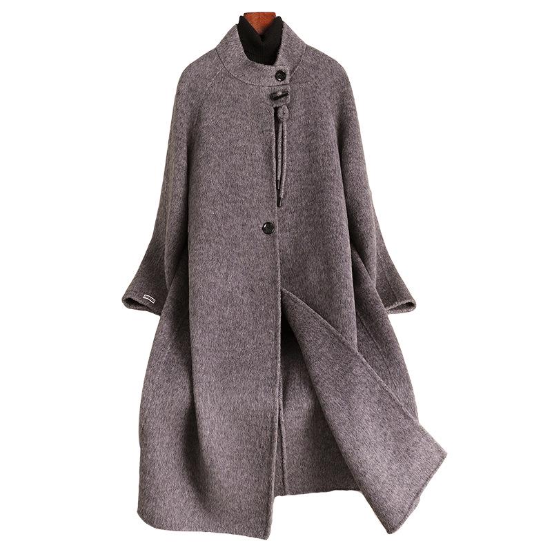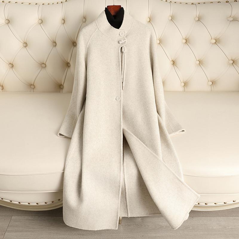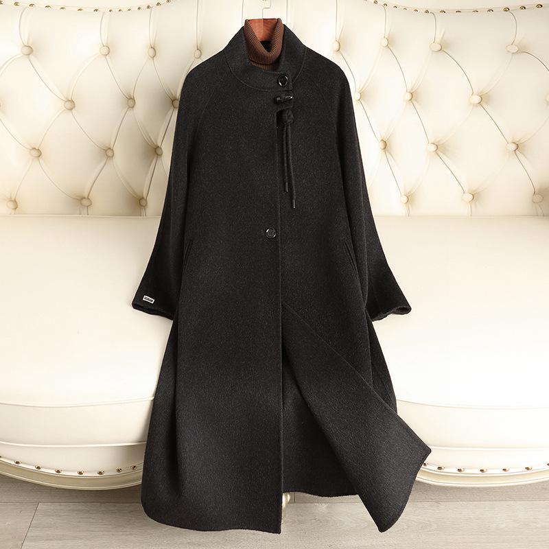 Пальто из двухстороннего кашемира однотонное с воротником-стойкой Осень/Зима 2024 - Модное, Универсальное, Высококлассное шерстяное пальто на пуговицах-рожках
