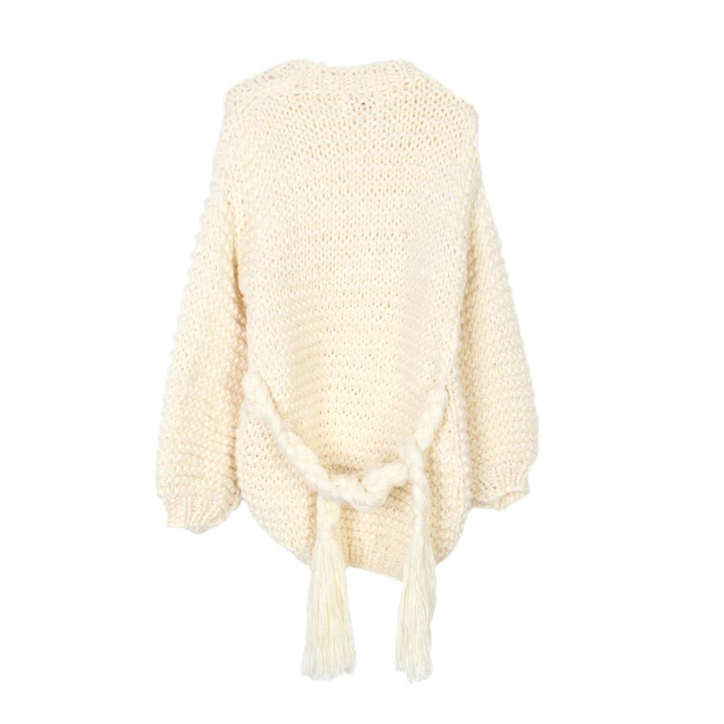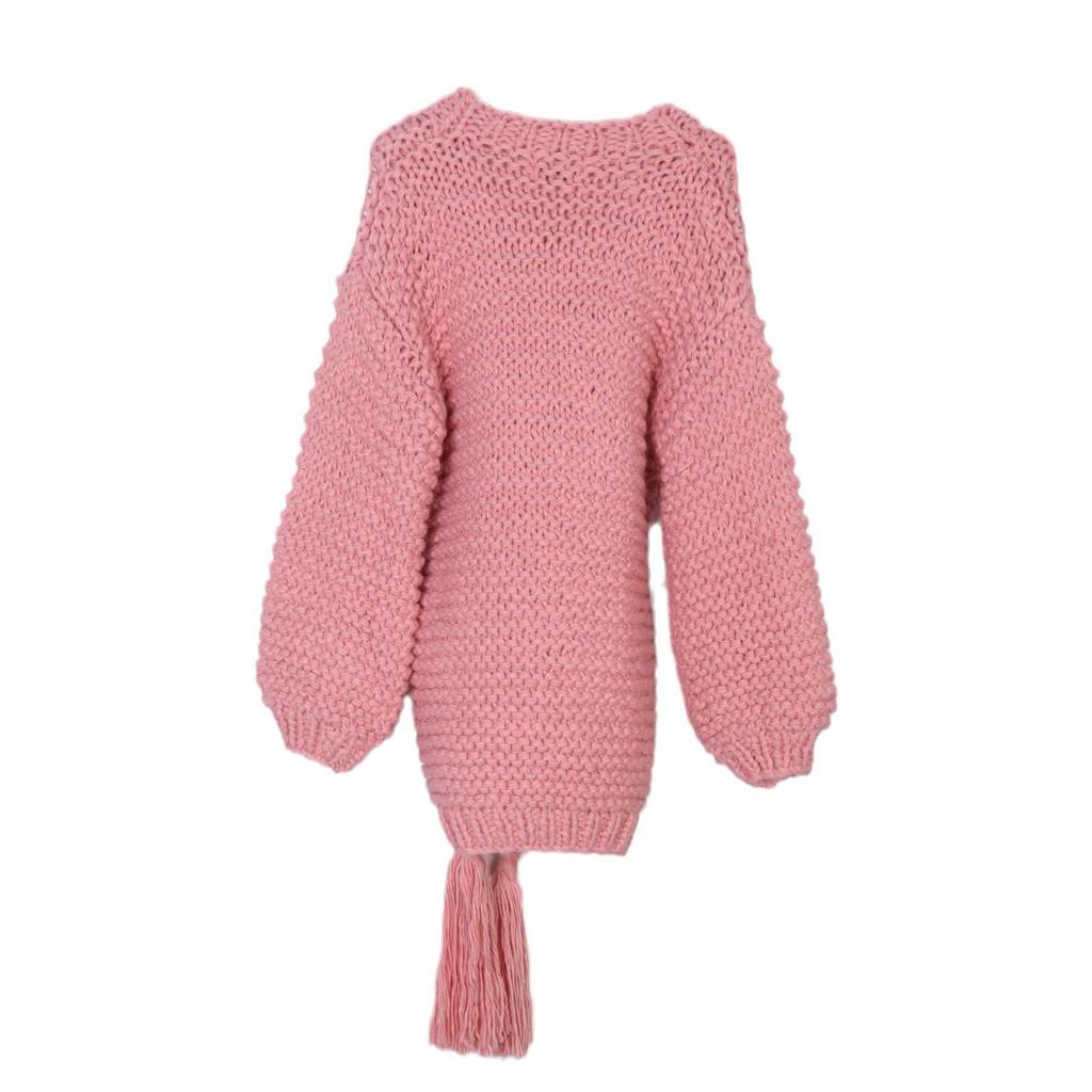 Женский кардиган с рукавами-фонариками и кисточками в европейском и американском стиле - Ручной работы, плотный и уютный для осени и зимы