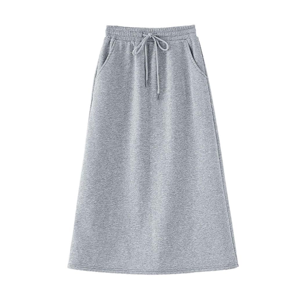 Юбка миди А-силуэта с высокой талией для полных женщин - Драпирующаяся, с разрезом, на флисовой подкладке для осени/зимы