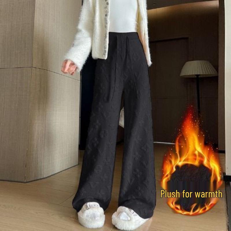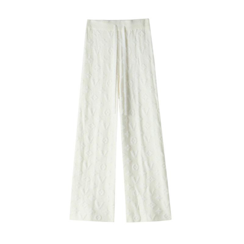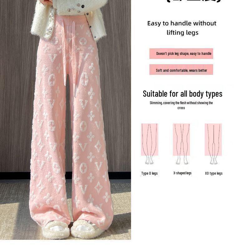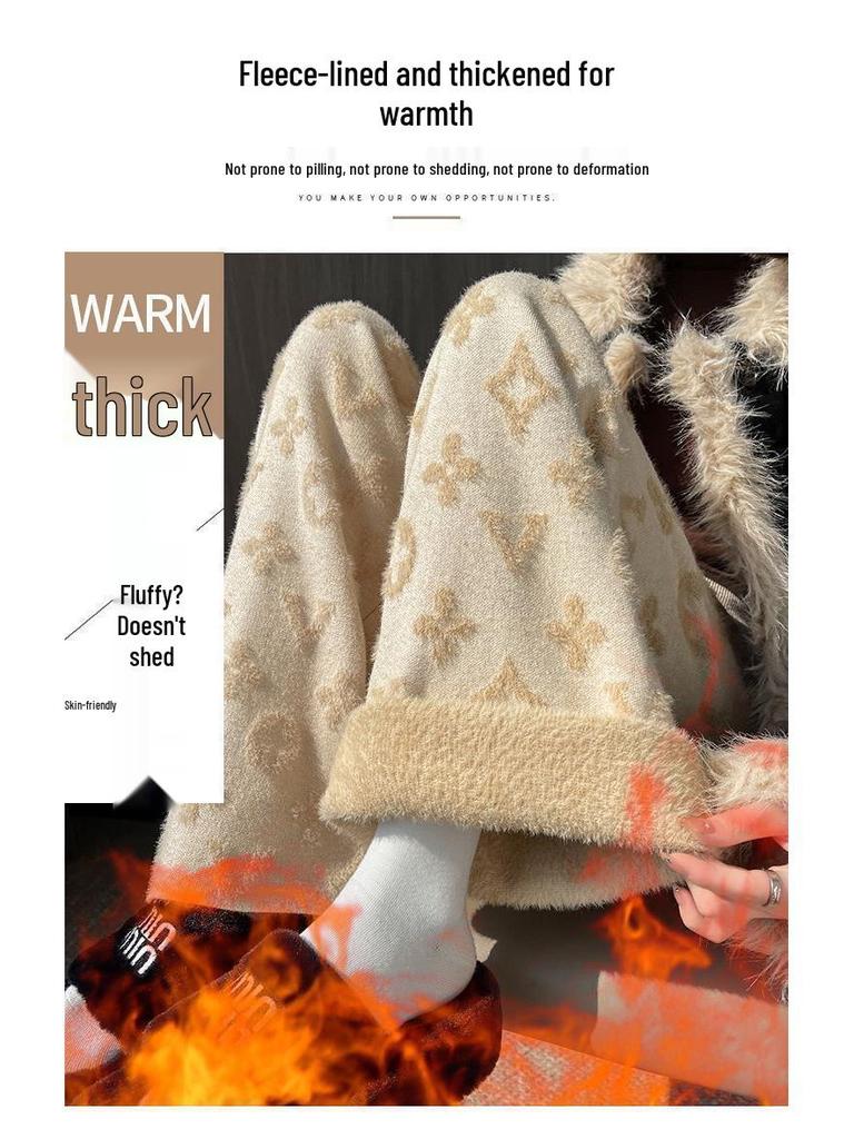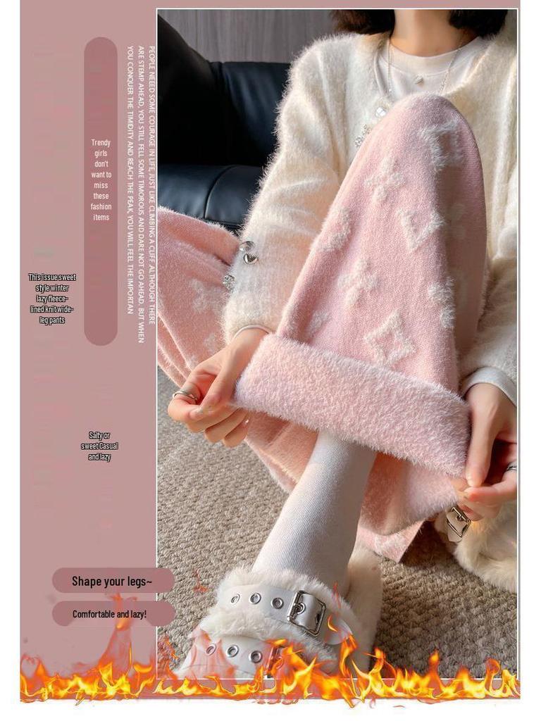 Женские белые вязаные брюки из норки с высокой посадкой и флисовой подкладкой, с широкими штанинами, повседневные, длиной до пола, осень/зима 2024.
